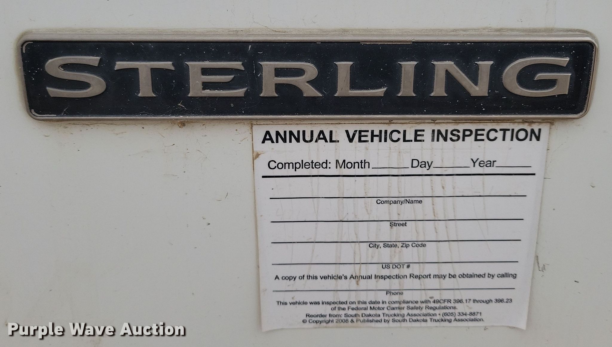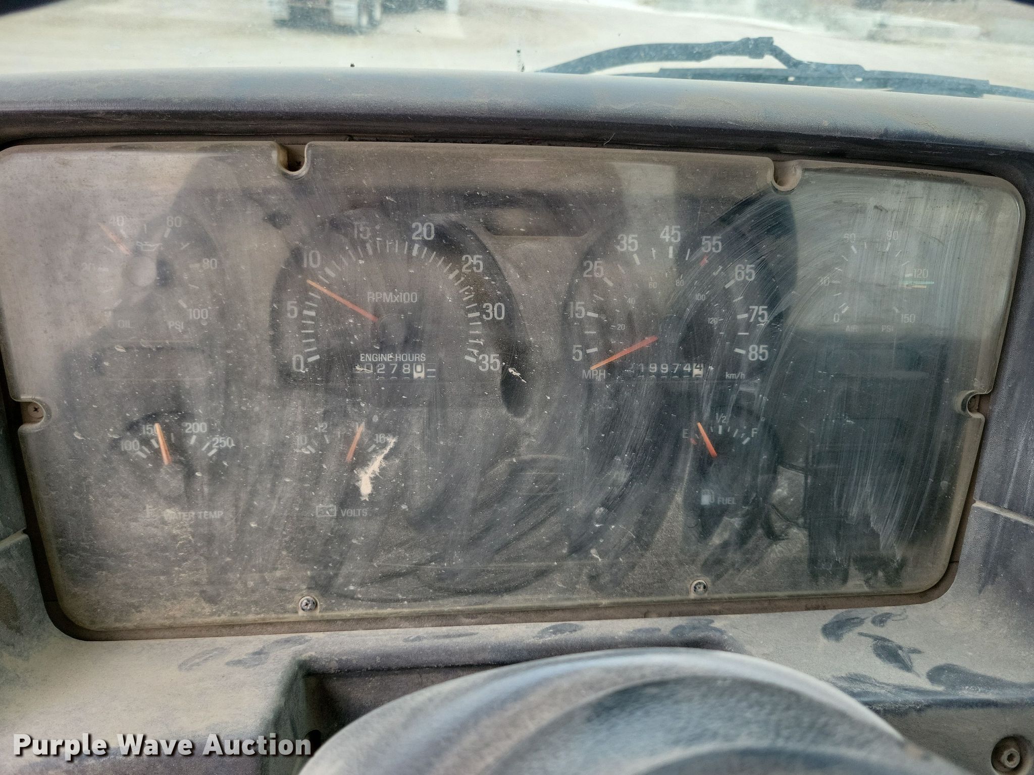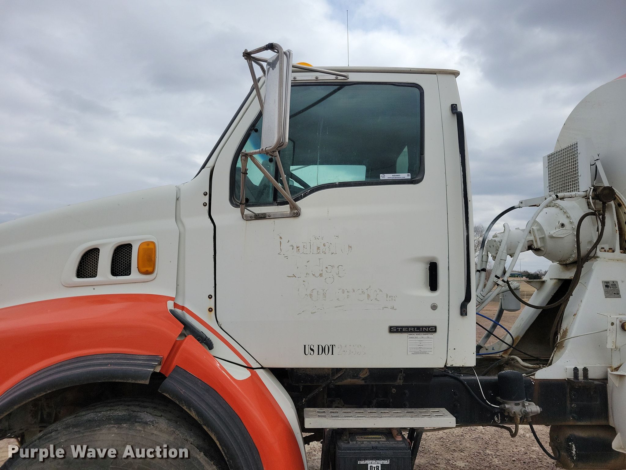 1999 Sterling LT8513 ready mix truck. Miles: 219,974 on odometer, Hours: 20,278 on meter, VIN: 2FZXMLCB5XAB08040. Engine Cummins ISC, Serial: 45779931, Displacement: 8.3L, Cylinders: 6, Fuel type: Diesel, HP: 285. Transmission Eaton Fuller RTO-9MLL, Manual, Speed: 11. Chassis Axles: Tandem, Suspension: Spring over walking beam, Brakes: Air, Front mount PTO, GVWR: 60,000 lbs FAWR: 20,000 lbs, IAWR: 20,000 lbs, RAWR: 20,000 lbs. Interior Heat, Heated mirrors, Cruise control. Features Mixer McNeilus, Capacity: 9 cu.yd., Discharge: Rear, In-cab controls, Rear drum controls, Chute Extensions: 3, Chute type: Steel.. Tires Front: 425/65R22.5, Rear: 11R22.5. South Dakota title. Buffalo Ridge Concrete. Madison, SD 57042