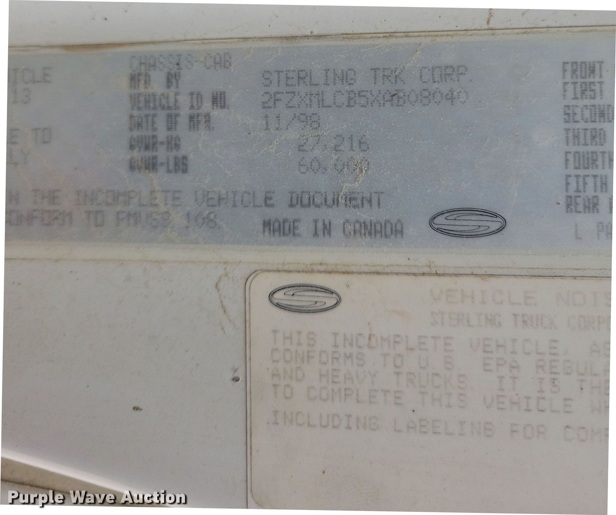 Take a look at this used 1999 Sterling LT8513 ready mix truck being sold on April 24th, 2025 in the SOLD! April 24 Construction Equipment Auction made by Sterling. Take a look at all of the item information below or take a look at similar auctions for Construction Trucks.