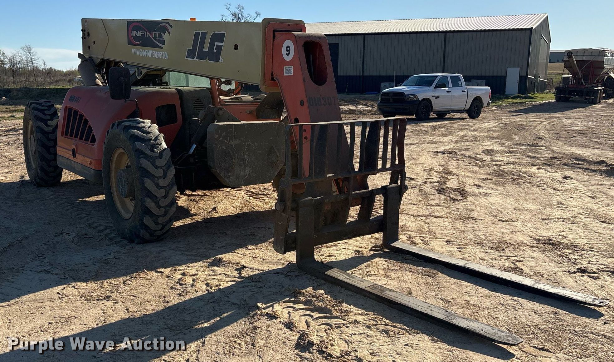 2006 JLG G943 telehandler. Hours: 7,187 on meter, Miles or hours may vary, unit still in use, Serial: 0160018307. Engine John Deere 4045, Cylinders: 4, Fuel type: Diesel. Transmission Powershift, 4F - 4R, Four wheel drive. Operators station OROPS, Steering: Crab, Four wheel. Features Maximum lift capacity: 9,000 lbs, Maximum lift height: 43', Boom stages: 3, Fork length: 72", Auxiliary hydraulics, Tilt carriage, Hydraulic leveling, Quick attach: Manual. Tires Size: 13.00-24 TG, Foam filled. RCK Ranch. Como, TX 75431