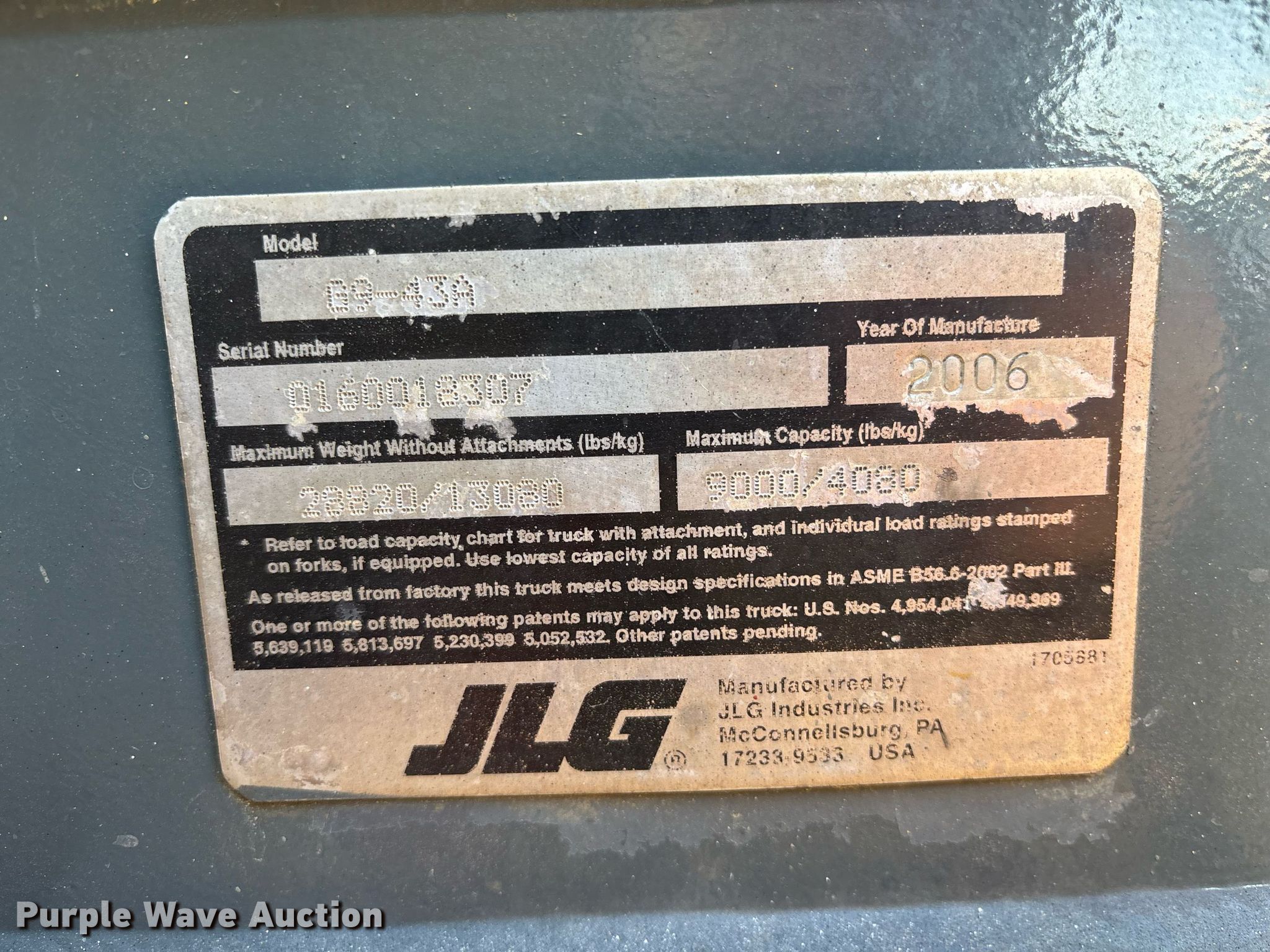 Purple Wave is selling a used Telehandler in Texas. This item is a 2006 JLG G943 telehandler with the following: Hours: 7,187 on meter, Miles or hours may vary, unit still in use, Serial: 0160018307