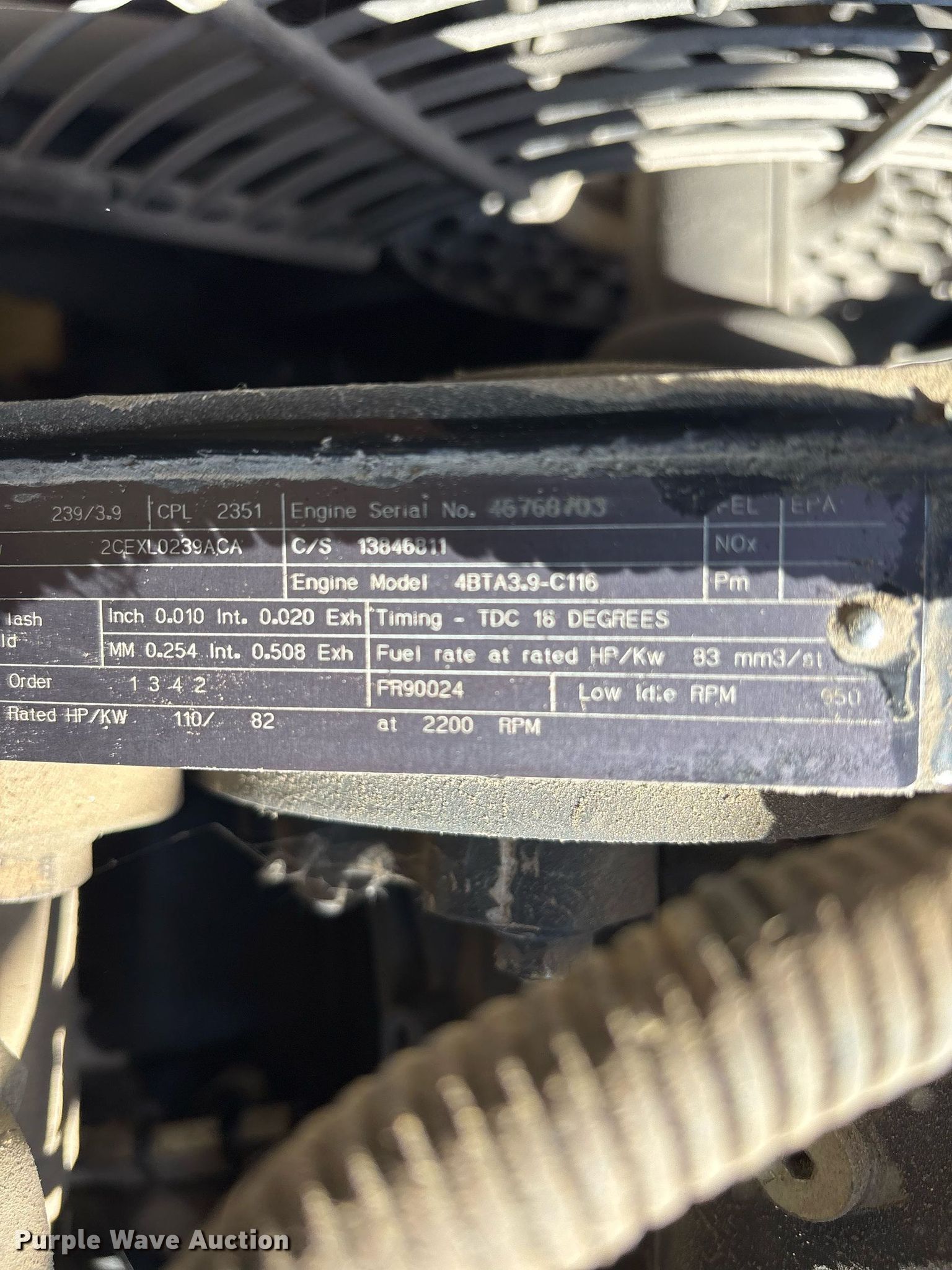 2007 Ingersoll Rand DD-90HF double drum vibratory roller. Hours: 2,796 on meter, Serial: 195377. Engine Cummins 4BTA3.9-C116, Serial: 46768703, Displacement: 3.9L, Cylinders: 4, Fuel type: Diesel. Transmission Hydrostatic. Features Drum: Smooth, Vibratory system: Independent drum controls, Two speed, Front drum Width: 66", Diameter: 47", Rear drum Width: 66", Diameter: 47", Drum scrapers: Front, Rear, Water spray applicator: Front, Rear. Notes Non-operational engine, blown , Non-operational unit. Tomlinson Asphalt Co. Inc.. Fayetteville, AR 72704