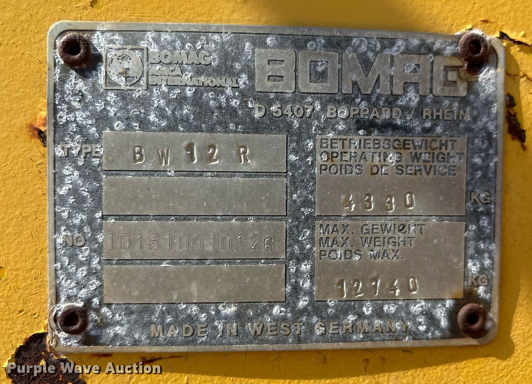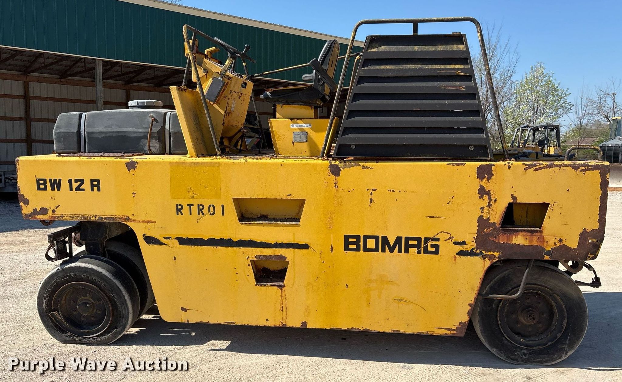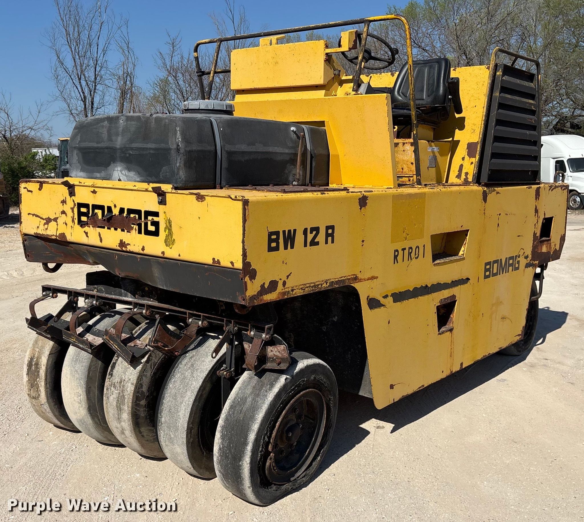 Purple Wave is selling a used Pneumatic Roller in Arkansas. This item is a Bomag BW12R pneumatic roller with the following: Hours: 908 on meter, Serial: 101610010126, Unit #: RTR01