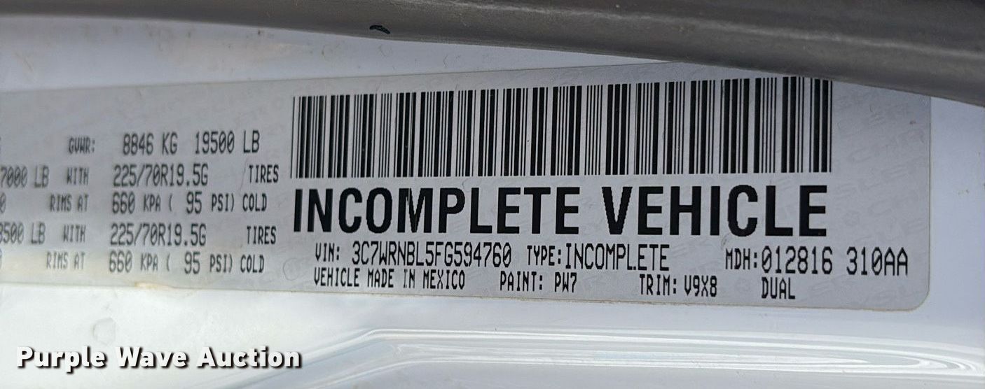 Purple Wave is selling a used Bucket Truck in Arkansas. This item is a 2015 Dodge Ram 5500 bucket truck with the following: Miles: 153,828 on odometer, VIN: 3C7WRNBL5FG594760, Unit #: 107