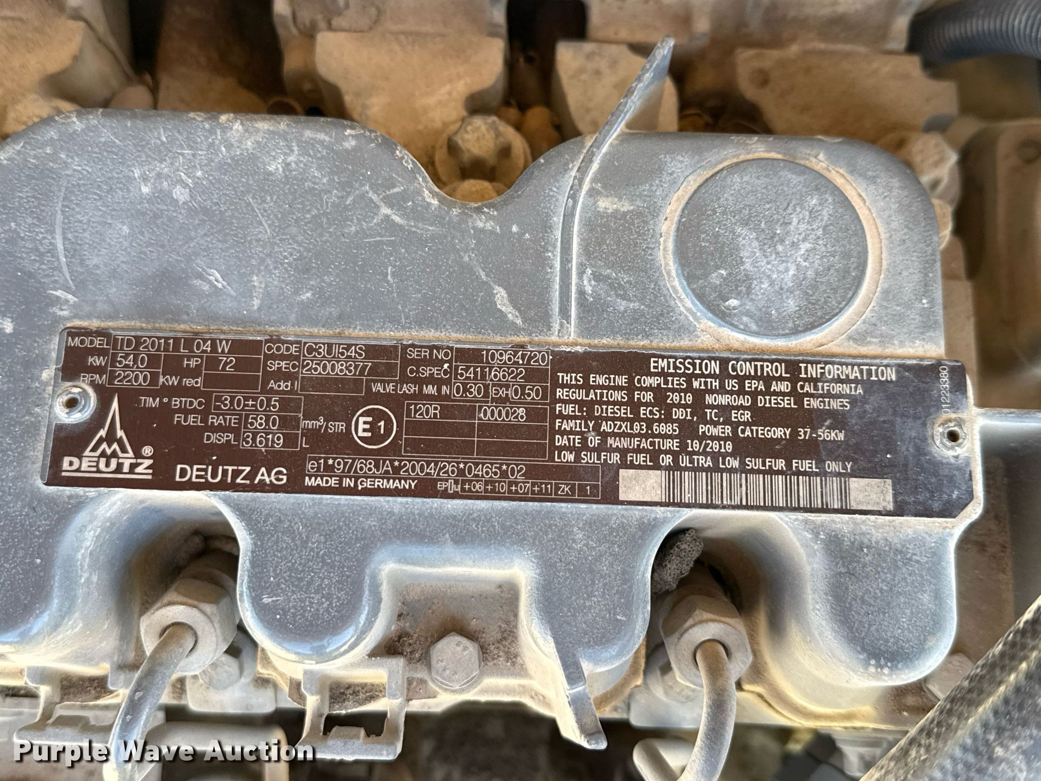 2010 Terex TL100 wheel loader. Hours: 3,679 on meter, Serial: TL01001241, Unit #: 46609165. Engine Deutz TD 2011 L04W, Serial: 10964720, Displacement: 3.619L, Cylinders: 4, Fuel type: Diesel, HP: 72, kW: 54. Transmission Hydrostatic, Two speed travel. Operators station Enclosed cab, AC, Heat, Bucket controls: Joystick. Features Auxiliary hydraulics: Front, Quick coupler: Hydraulic, Bucket Terex SKL 844, Capacity: 144 cu.yd., Width: 77". Tires Size: 405/70R20. Notes Non-operational unit. Insurance salvage, stored at a secured facility. Please review REQUIRED REMOVAL INSTRUCTIONS. Insurance Salvage. 11130 Applewhite Road. San Antonio, TX 78224