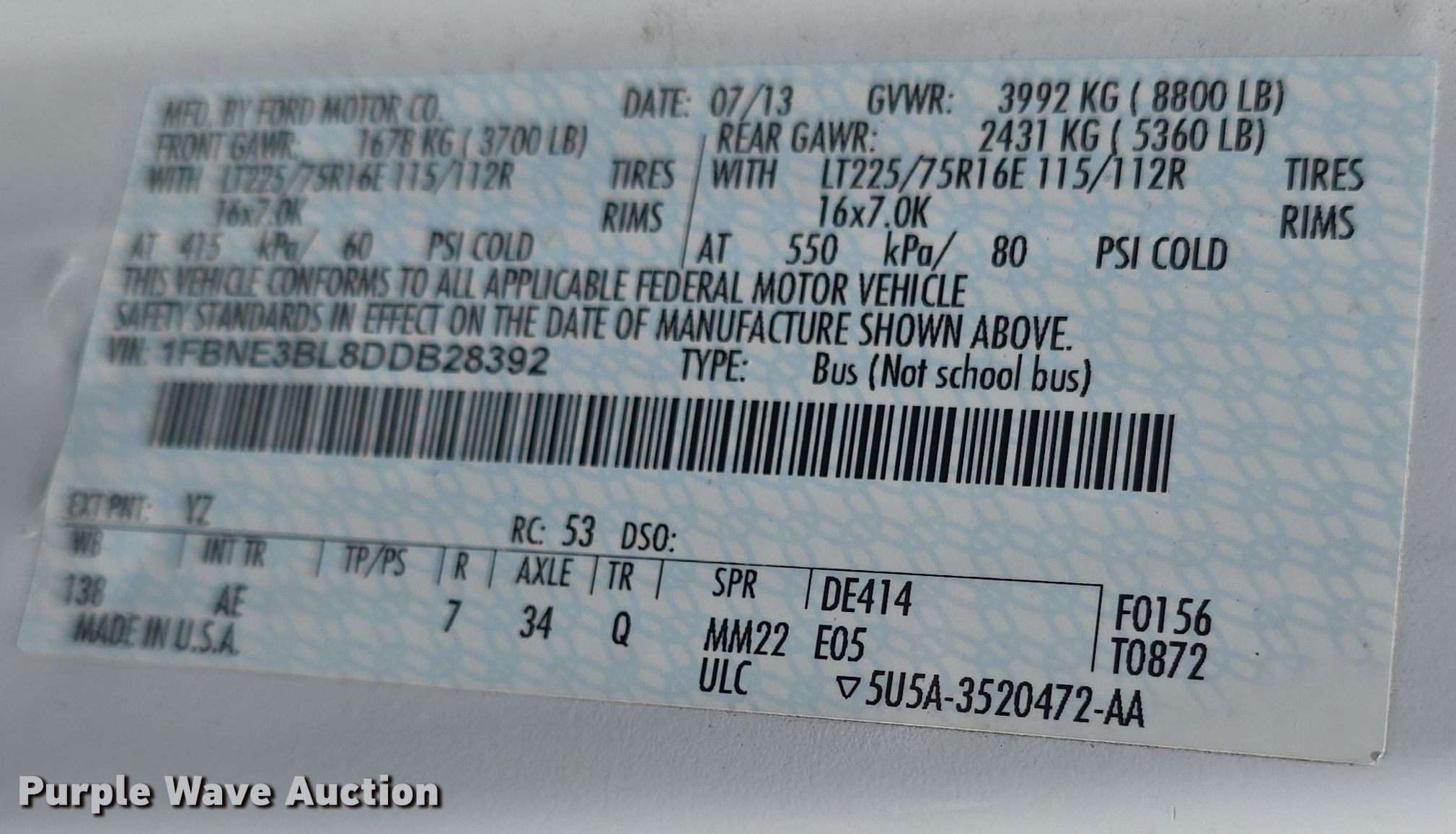 - VIN: 1FBNE3BL8DDB28392