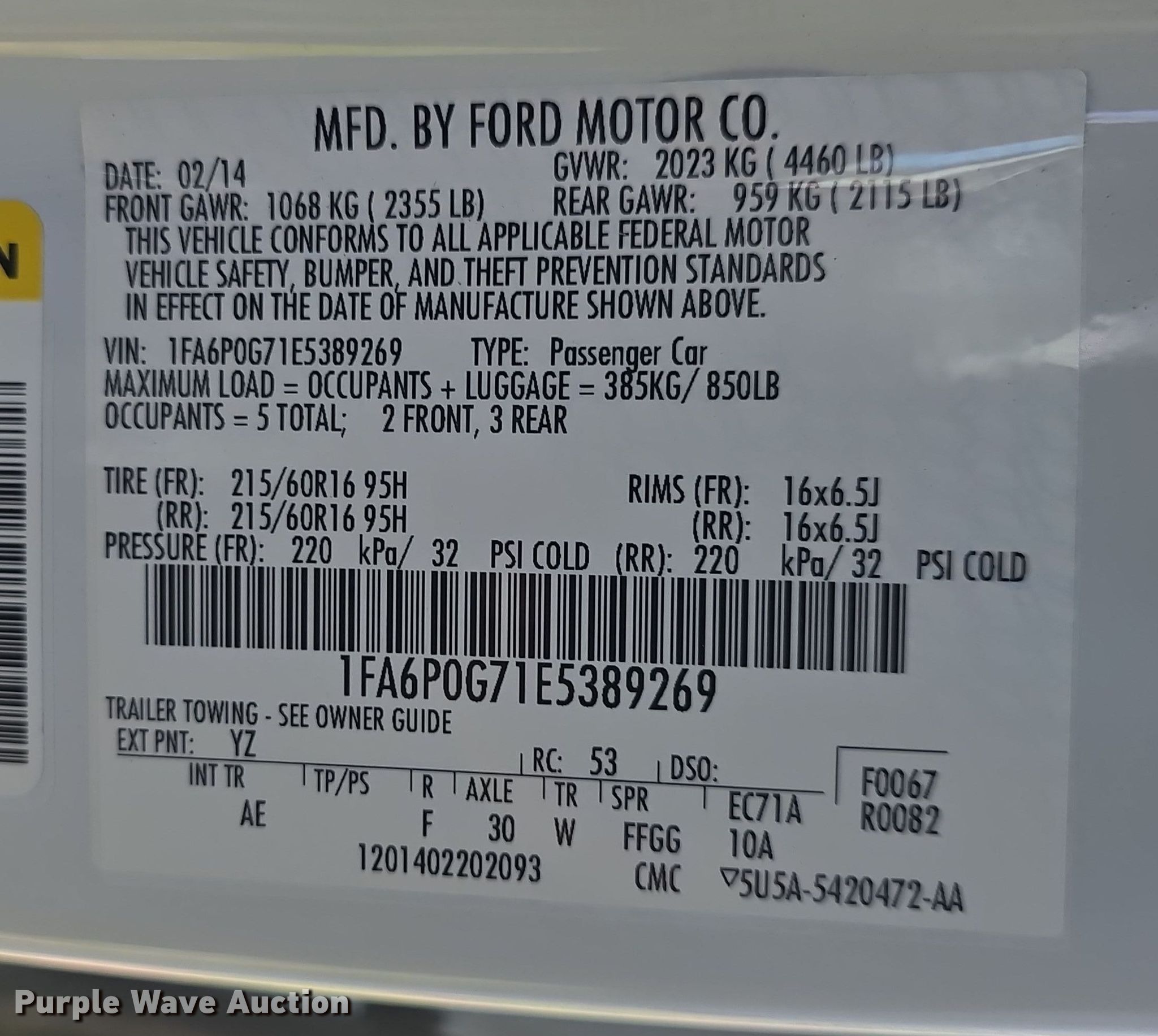 2014 Ford Fusion. Miles: 33,932 on odometer, VIN: 1FA6P0G71E5389269, Unit #: COR2771. Engine Displacement: 2.5L L4 DOHC, Cylinders: 4, Fuel type: Gas. Transmission Automatic. Interior AC, Heat, Power windows, Power locks, Cruise control. Tires Size: 215/60R16. Notes Weak battery. Kansas title. Title distribution may be delayed up to 14 days from verification of funds. Johnson County. Olathe, KS 66061