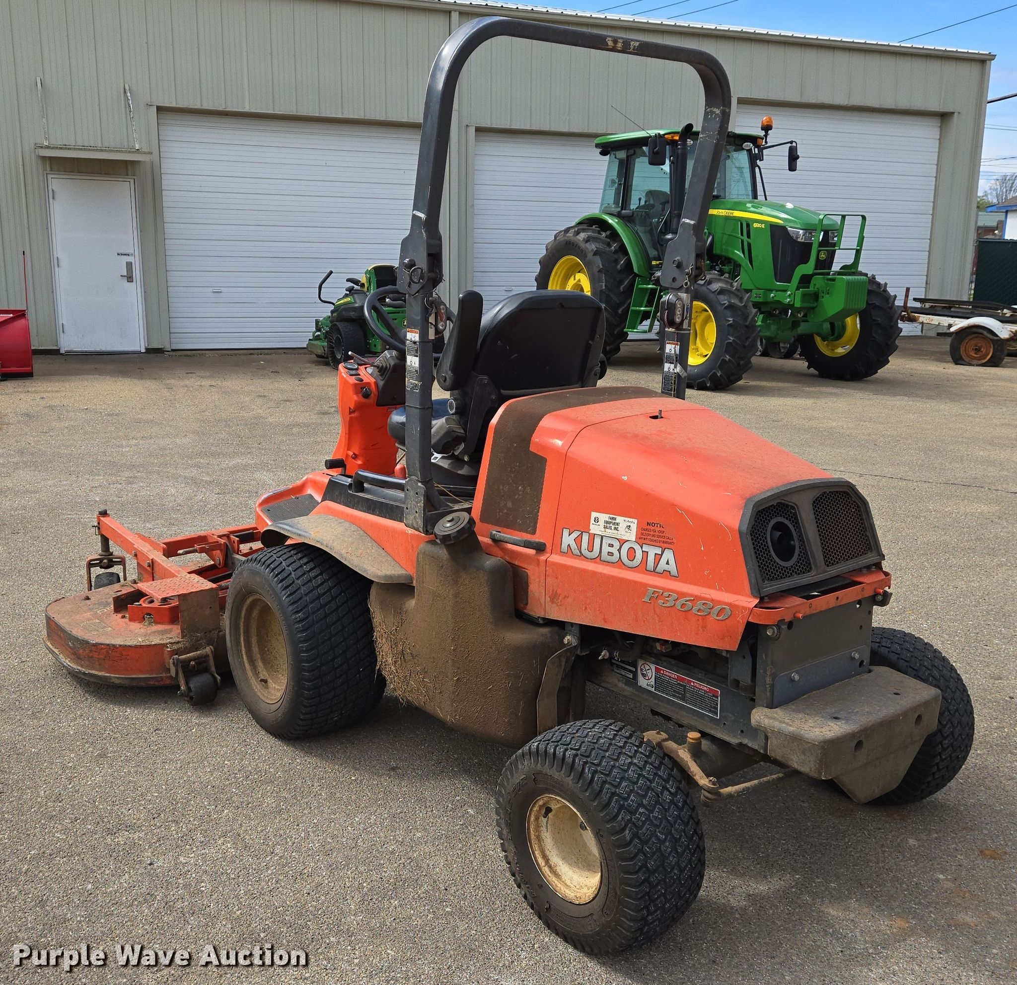 Purple Wave is selling a used Lawn Mower in Missouri. This item is a Kubota F3680 lawn mower with the following: Hours: 2,098 on meter, Cutting width: 72"