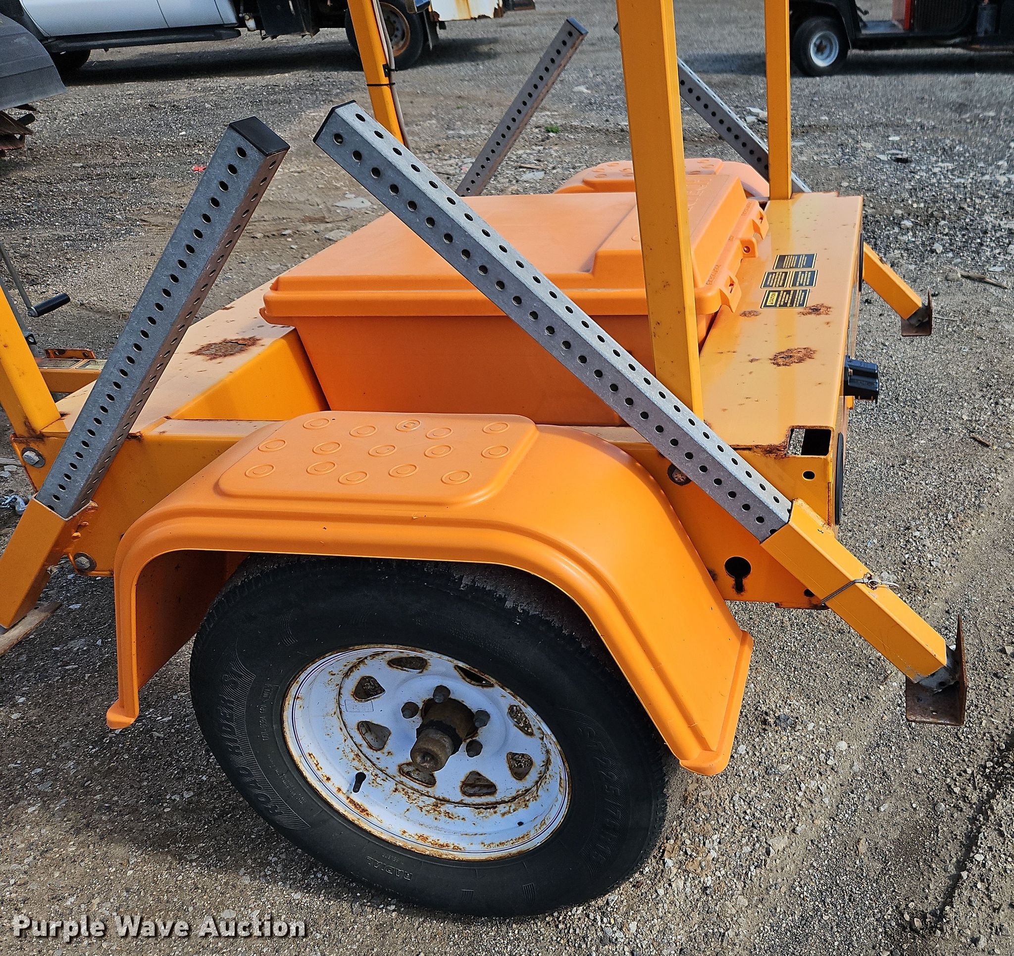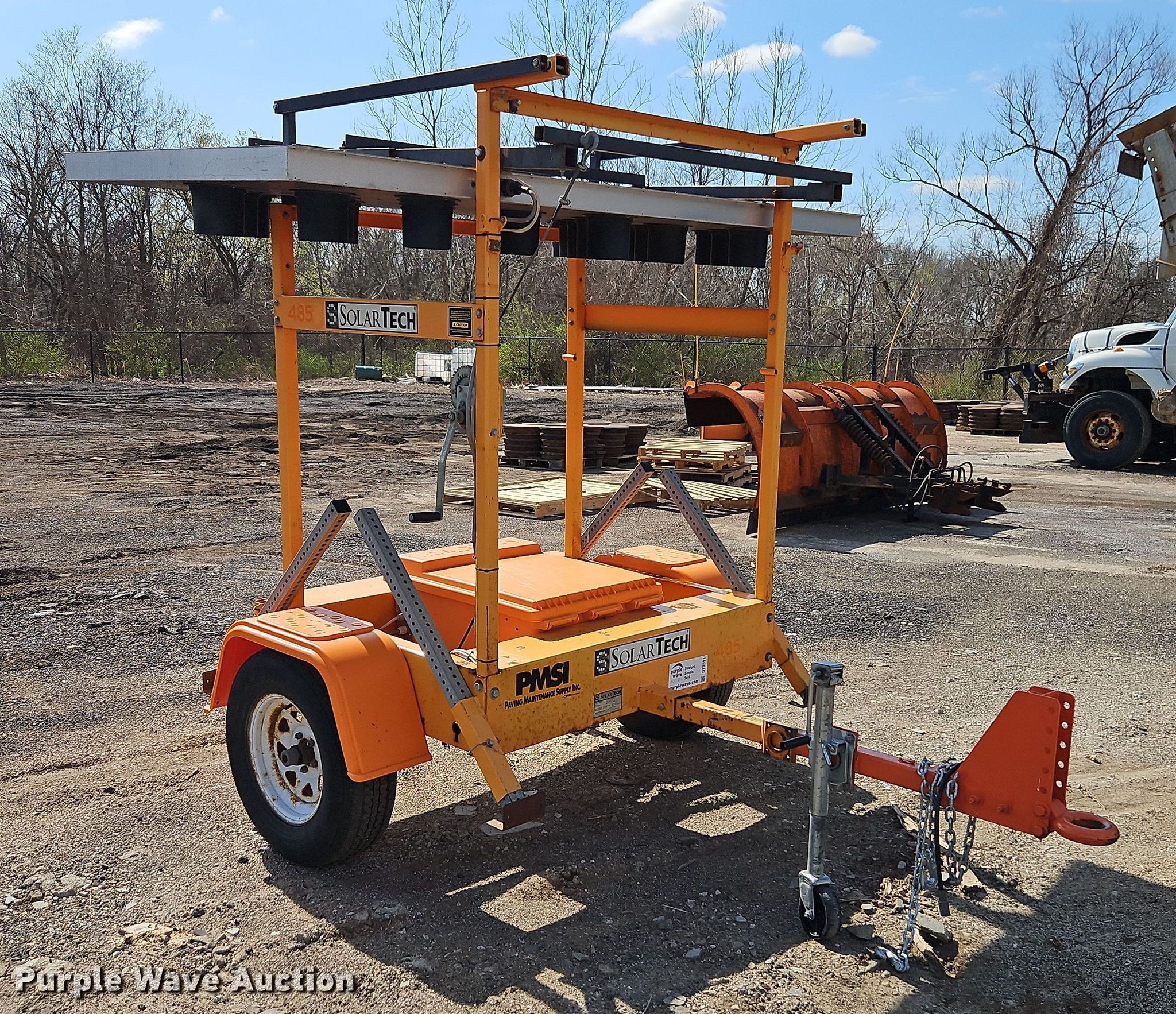 Purple Wave is selling a used Road Safety Equip. in Kansas. This item is a Solar Tech Silent Sentinel arrow board with the following: Overall: 9' L x 8' W