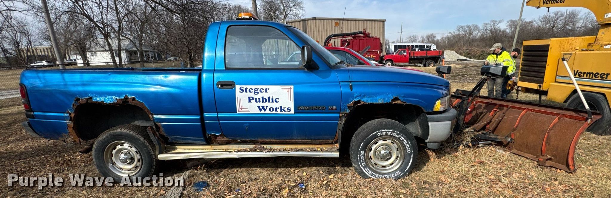 1999 Dodge Ram 1500 pickup truck. Miles: 84,873 on odometer, VIN: 1B7HF16Y9XS236732. Engine Displacement: 5.2L V8 OHV, Cylinders: 8, Fuel type: Gas. Transmission Automatic, Four wheel drive. Interior Heat. Features 90" W western snow plow. Tires Size: 255/70R16. Notes Non-operational snow plow, Dash warning indicator: Check engine, Dead battery. Illinois title. Seller is a government entity who will be assigning and distributing the title. Please contact the seller for distribution questions. Title distribution may be delayed up to 14 days from verification of funds. Village of Steger, IL. Steger, IL 60475