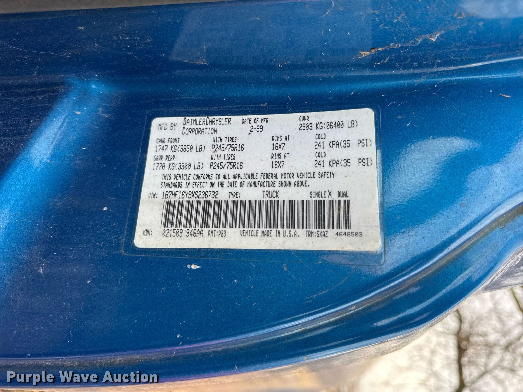 • VIN: 1B7HF16Y9XS236732