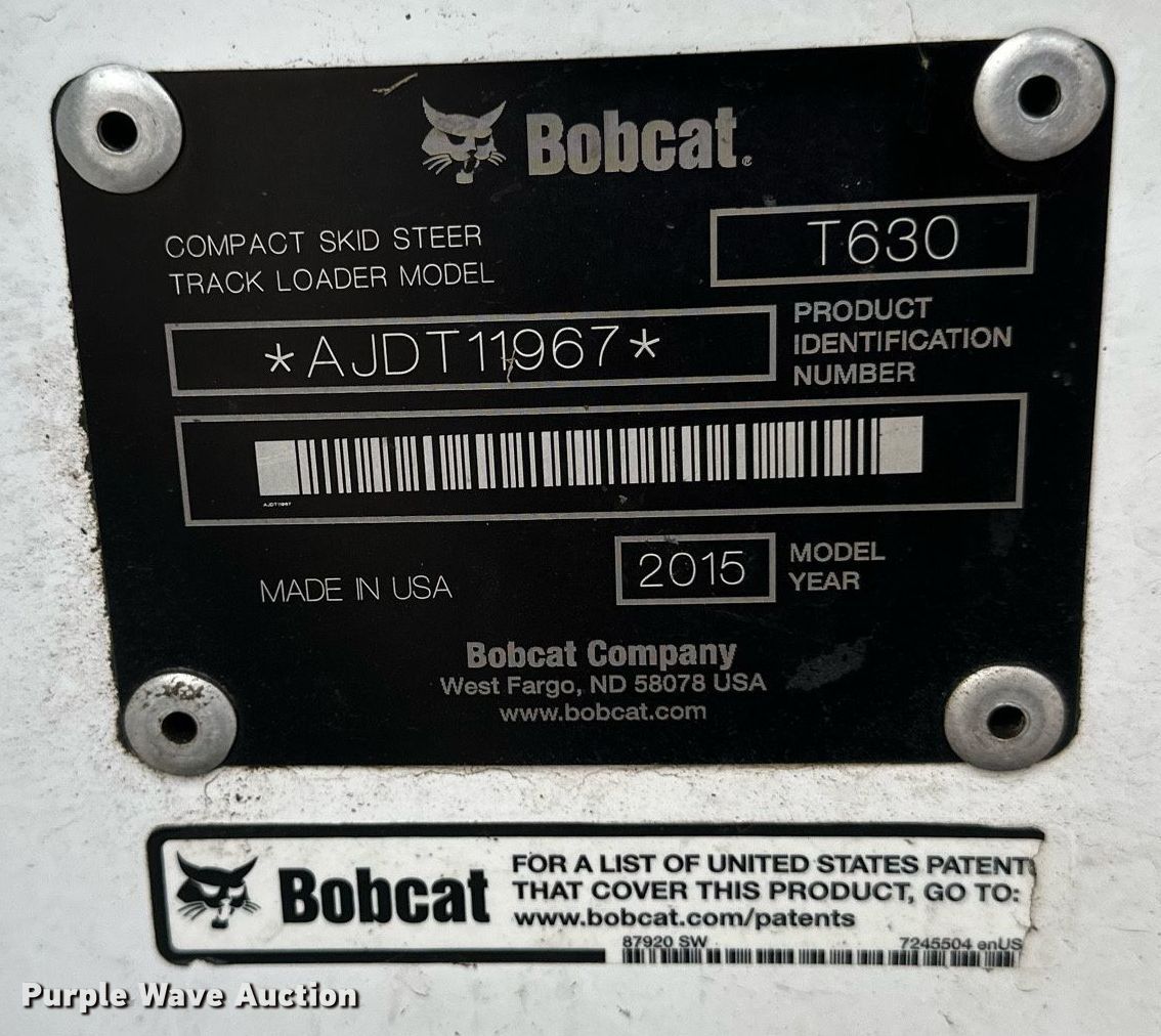 Purple Wave is selling a used Tracked Skid Steer Loader in Minnesota. This item is a 2015 Bobcat T630 tracked skid steer loader with the following: Hours: 3,838 on meter, Serial: AJDT11967