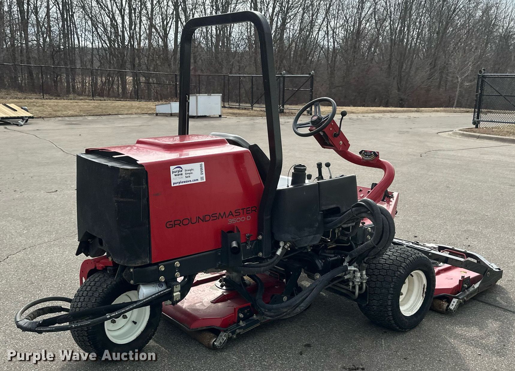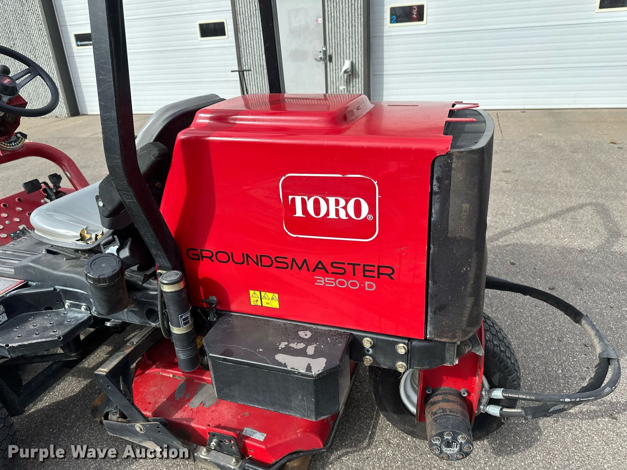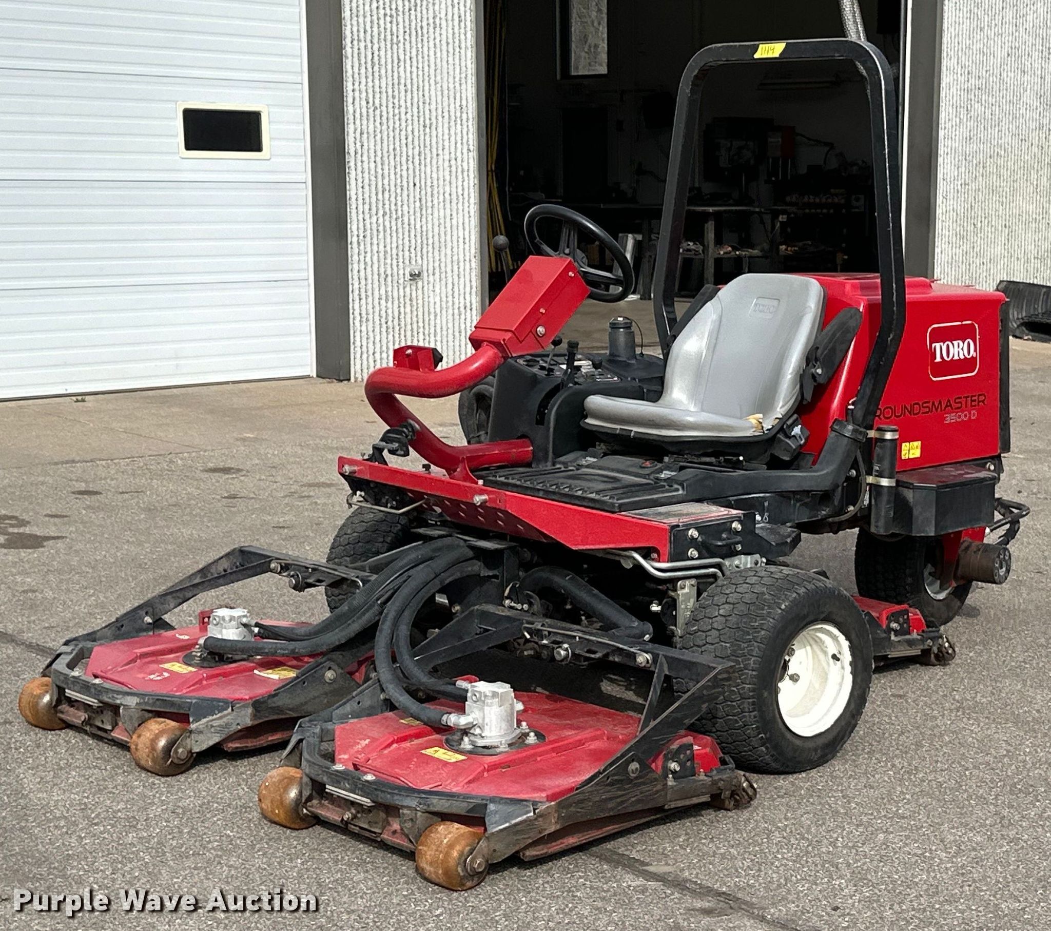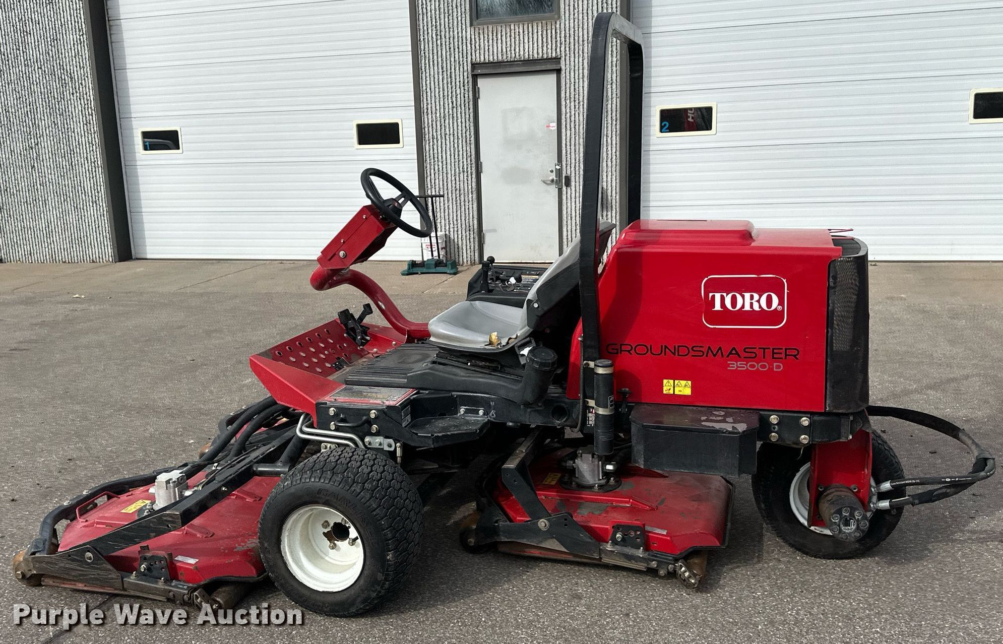 Purple Wave is selling a used Commercial Turf Mower in Minnesota. This item is a Toro Groundsmaster 3500D Sidewinder lawn mower with the following: Hours: 3,327 on meter, Cutting width: 68"