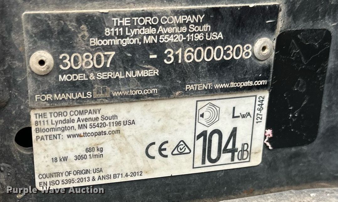 Purple Wave is selling a used Commercial Turf Mower in Minnesota. This item is a Toro Groundsmaster 3500D Sidewinder lawn mower with the following: Hours: 5,163 on meter, Cutting width: 68", Serial: 316000308