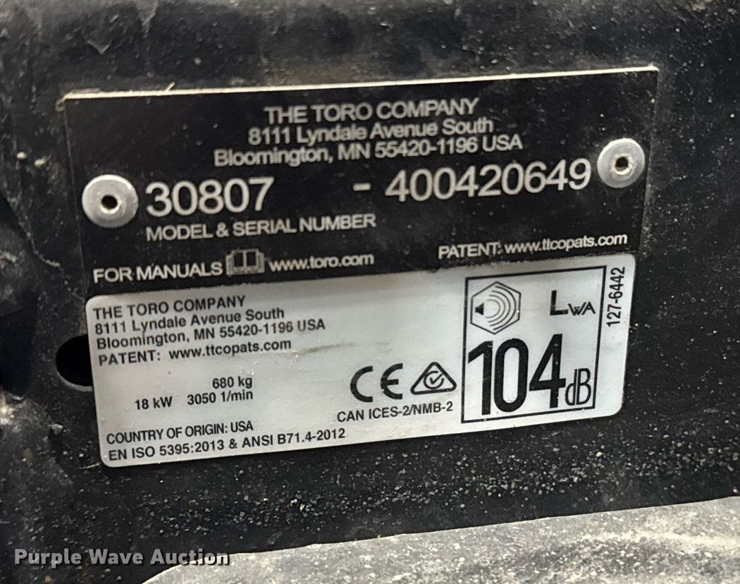 Purple Wave is selling a used Commercial Turf Mower in Missouri. This item is a Toro Ground Master 3500D ZTR lawn mower with the following: Cutting width: 68", Serial: 400420649