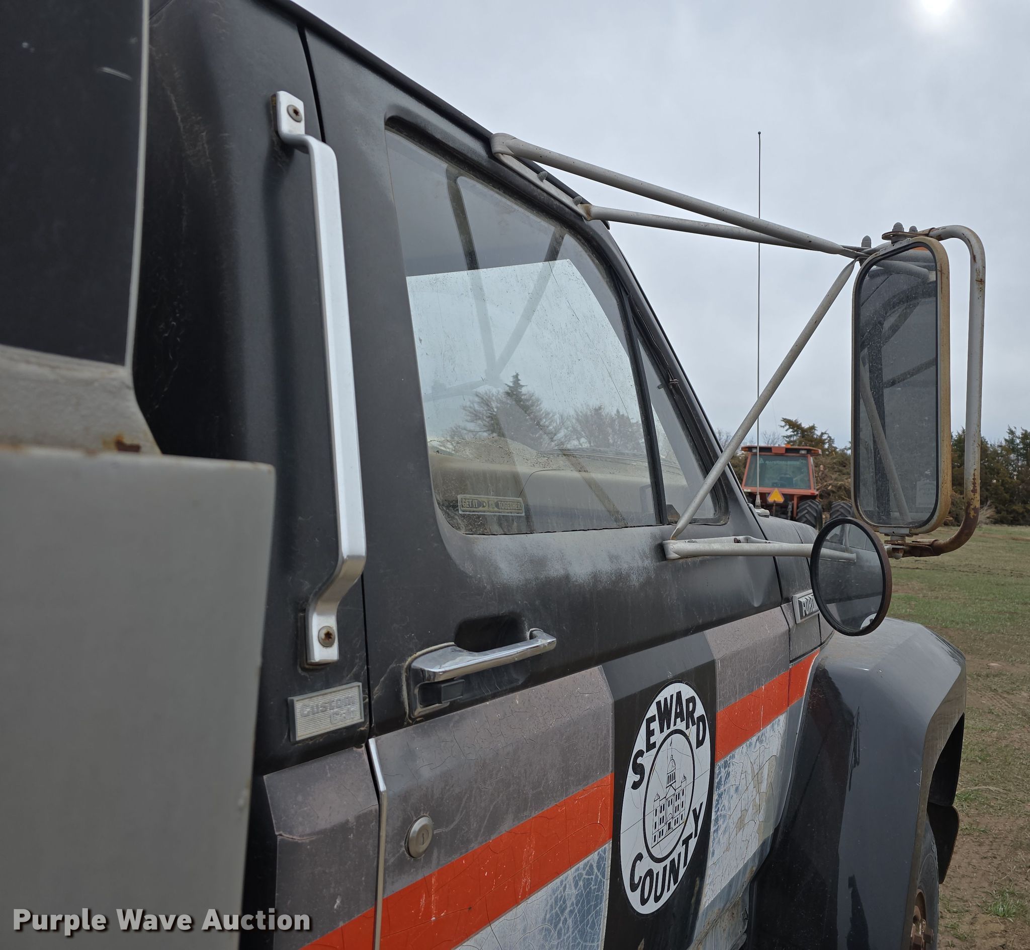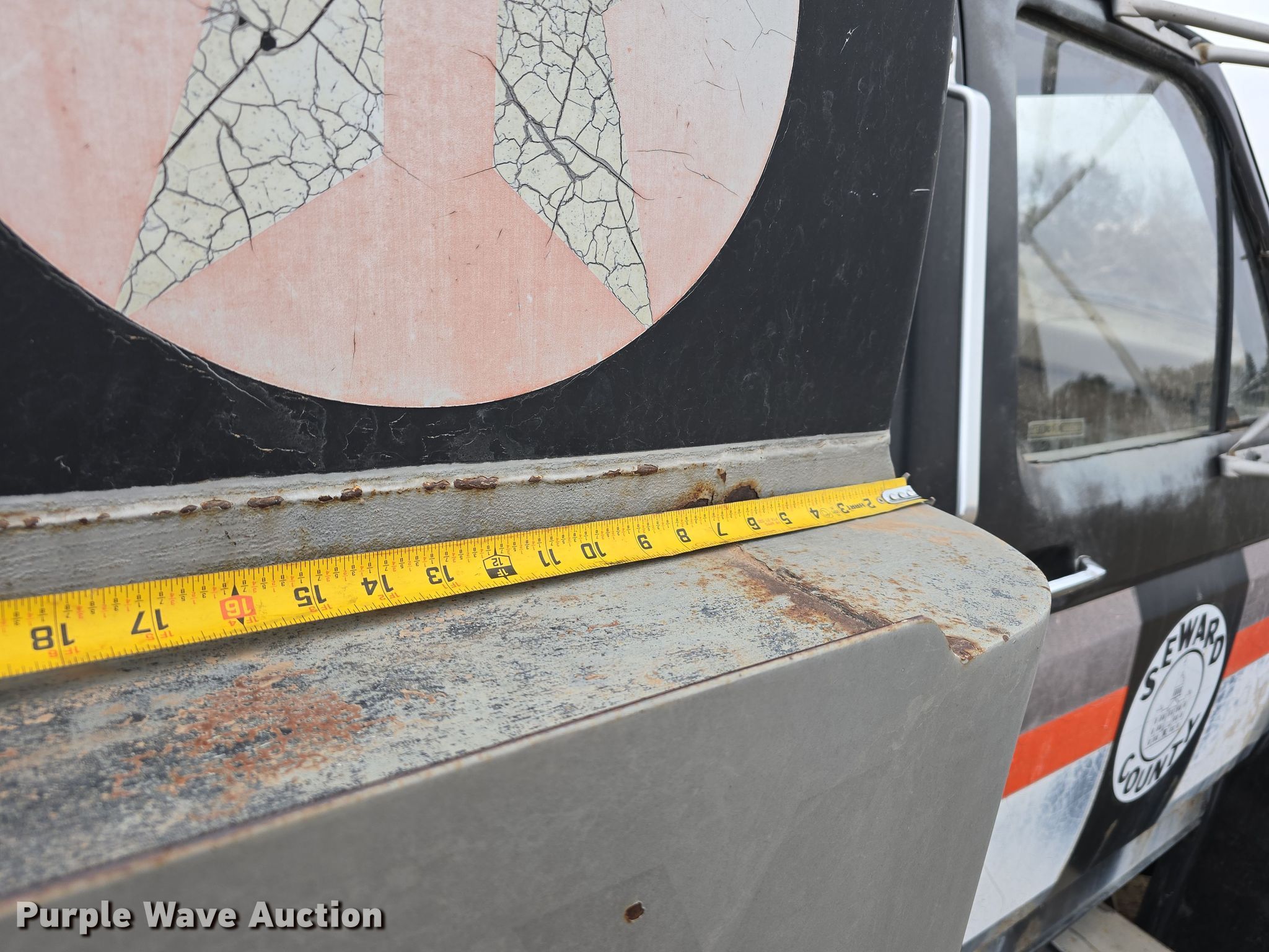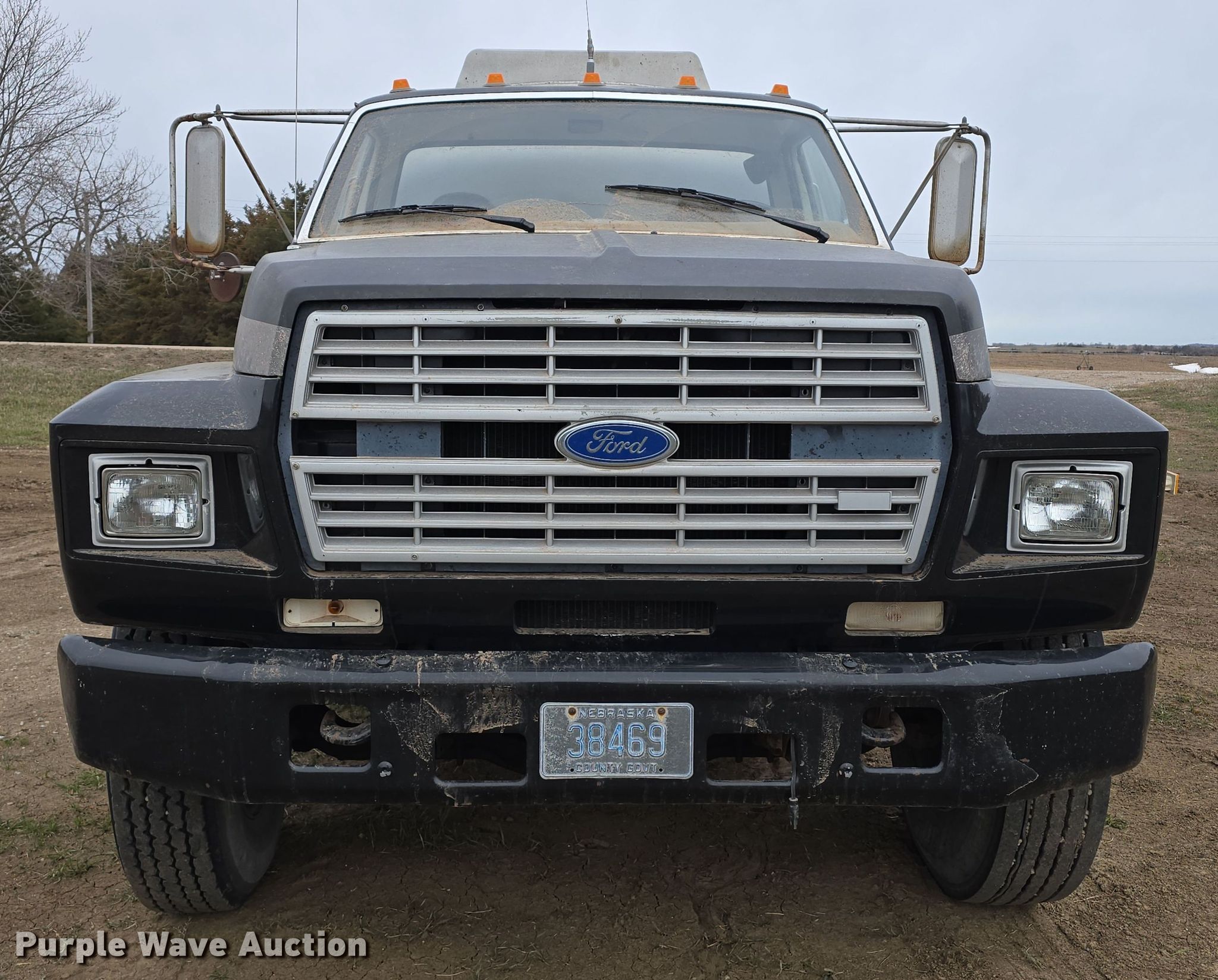 1985 Ford F800 fuel truck. Miles: 120,353 on odometer, VIN: 1FDNF82H9FVA25301. Engine Ford 370-4V Lima, Displacement: 6.1L, Cylinders: 8, Fuel type: Gas. Transmission Manual, Speed: 5, plus 2. Chassis Axles: Single, Suspension: Spring, Brakes: Hydraulic, PTO, GVWR: 23,100 lbs, Wheelbase: 189". Interior Heat. Features Bed / tank Quality Progress Products 800B, Serial: B33125, Capacity: 2,000 gallons, 15' 6" L x 82" W, Compartments: 5, Hose reels: 2, Nozzles, Metered pumps: 2 Make: Neptune.. Tires Front: 11R22.5, Rear: 10.00-20. Notes Windshield chipped or cracked, Exterior compartment doors missing, Compartment door handle issues, Transmission issues, stuck in high idle. Nebraska title. Title distribution may be delayed up to 14 days from verification of funds. Seward County. Seward, NE 68434