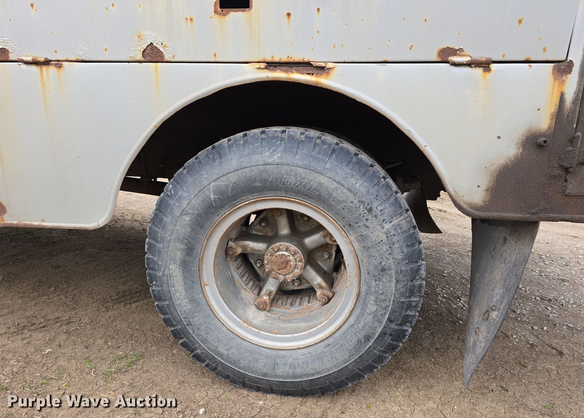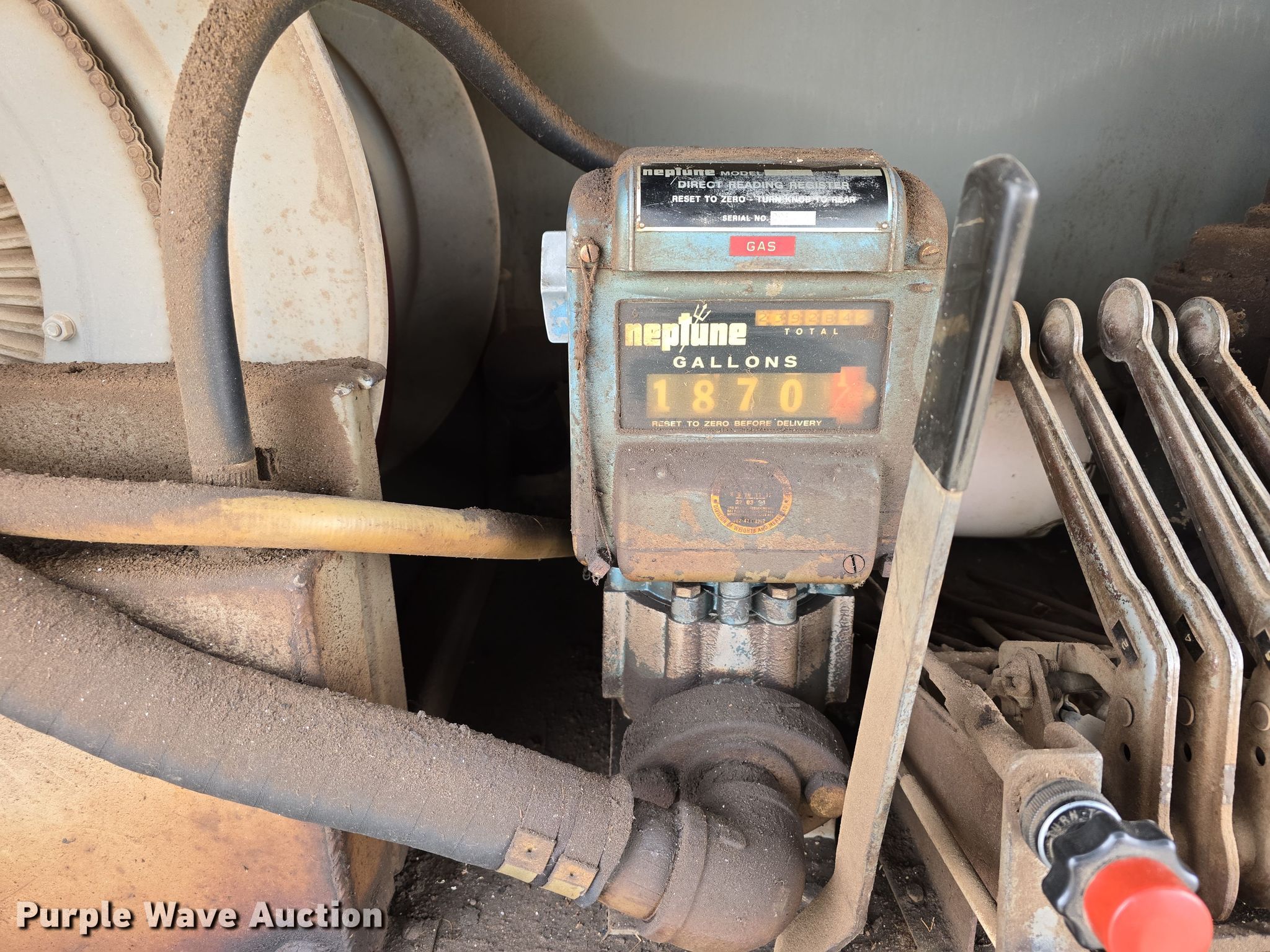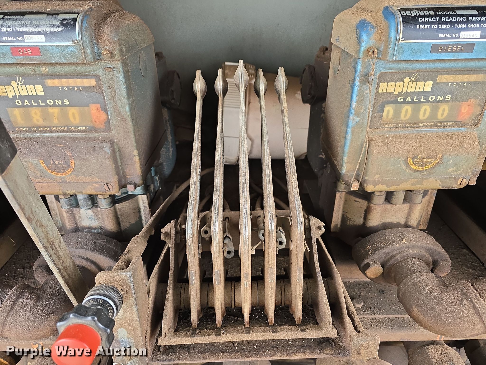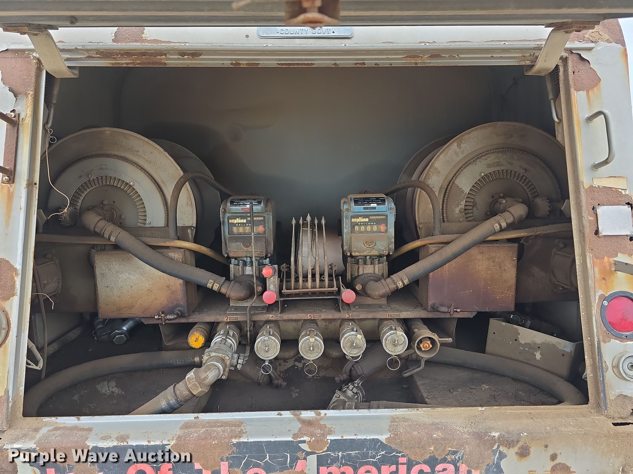 1985 Ford F800 fuel truck. Miles: 120,353 on odometer, VIN: 1FDNF82H9FVA25301. Engine Ford 370-4V Lima, Displacement: 6.1L, Cylinders: 8, Fuel type: Gas. Transmission Manual, Speed: 5, plus 2. Chassis Axles: Single, Suspension: Spring, Brakes: Hydraulic, PTO, GVWR: 23,100 lbs, Wheelbase: 189". Interior Heat. Features Bed / tank Quality Progress Products 800B, Serial: B33125, Capacity: 2,000 gallons, 15' 6" L x 82" W, Compartments: 5, Hose reels: 2, Nozzles, Metered pumps: 2 Make: Neptune.. Tires Front: 11R22.5, Rear: 10.00-20. Notes Windshield chipped or cracked, Exterior compartment doors missing, Compartment door handle issues, Transmission issues, stuck in high idle. Nebraska title. Title distribution may be delayed up to 14 days from verification of funds. Seward County. Seward, NE 68434