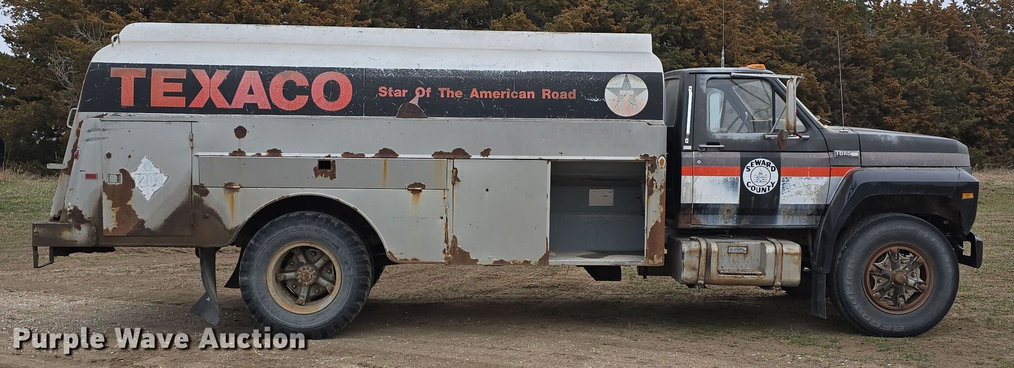 Purple Wave is selling a used Fuel Truck in Nebraska. This item is a 1985 Ford F800 fuel truck with the following: Miles: 120,353 on odometer, VIN: 1FDNF82H9FVA25301