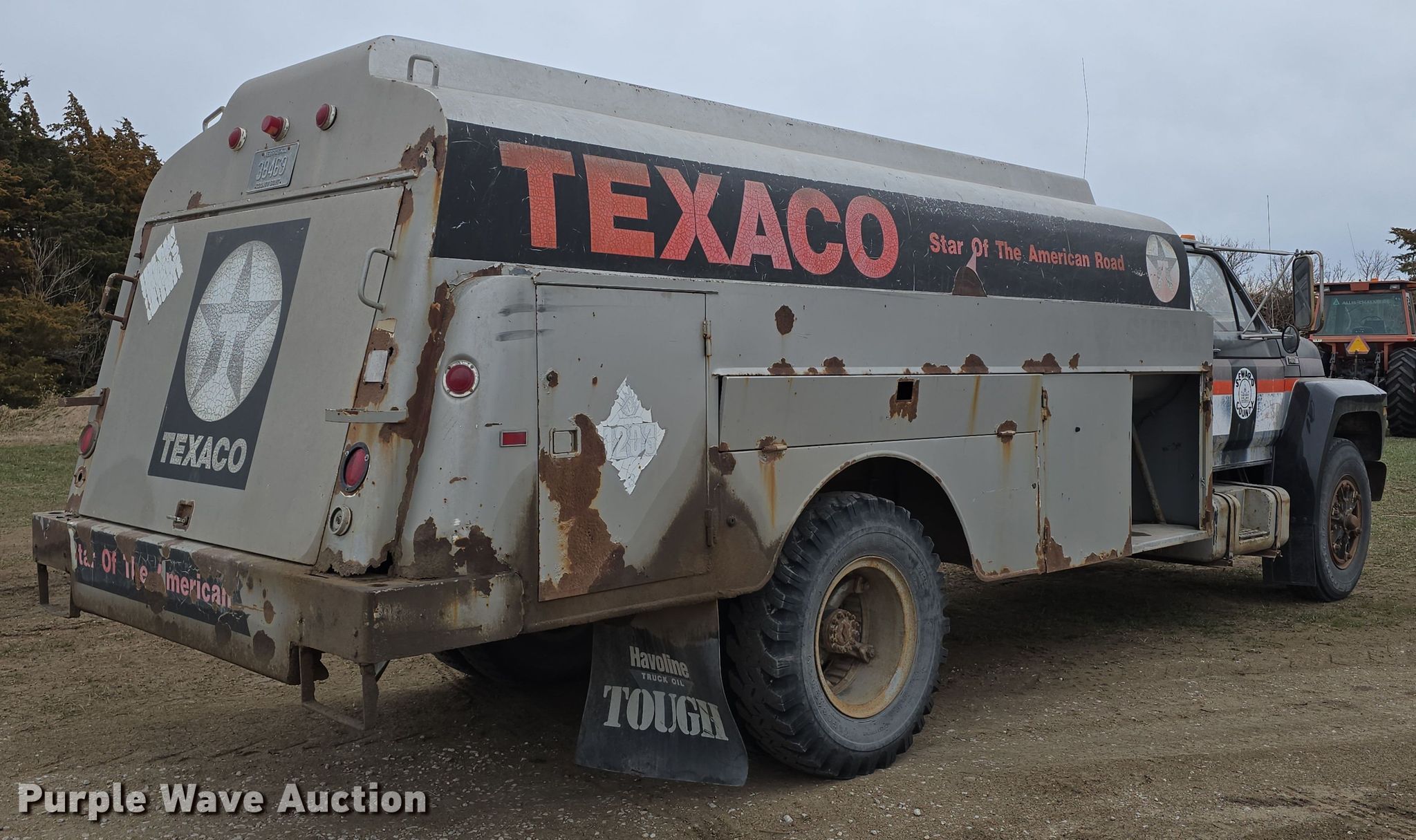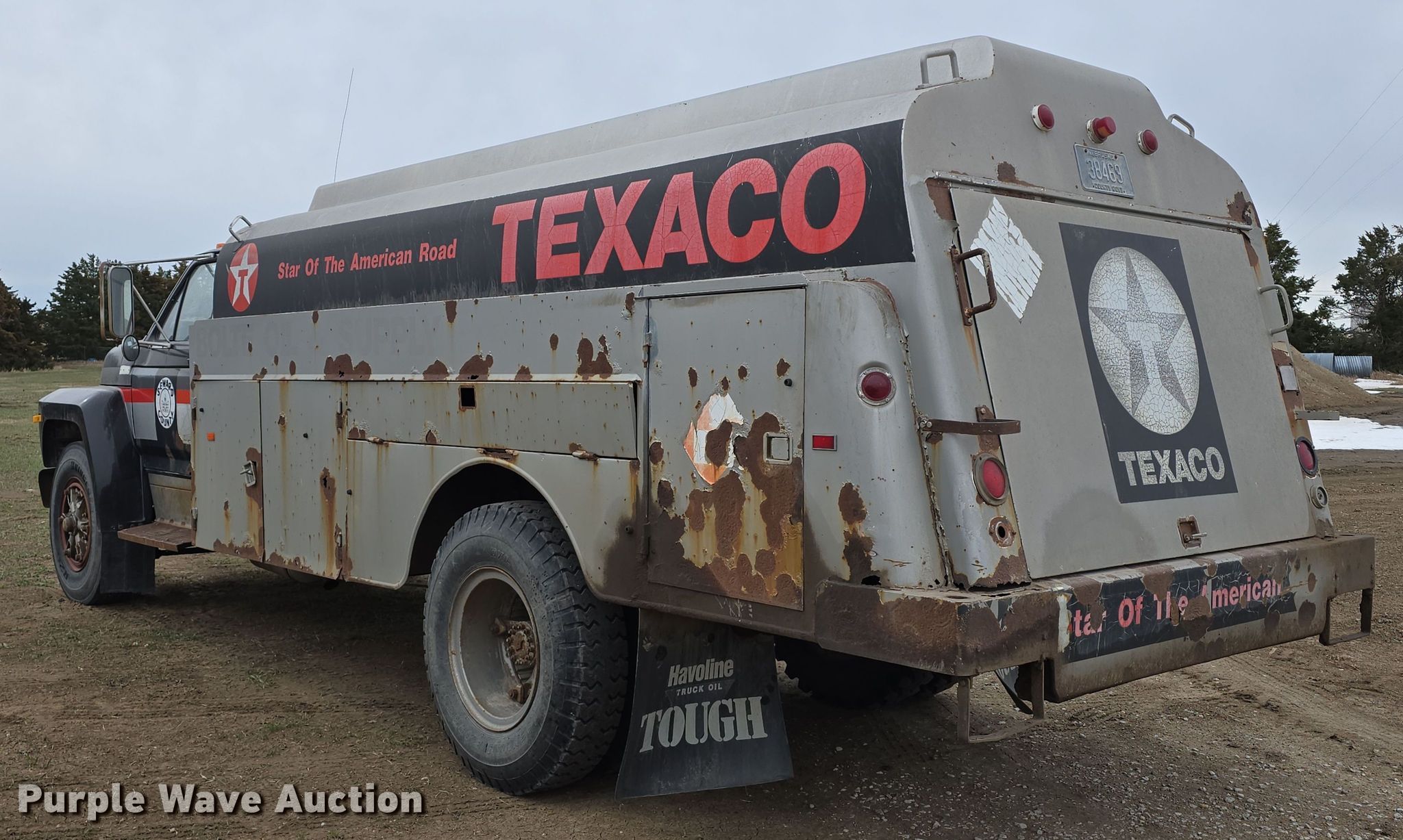 This 1985 Ford F800 fuel truck will sell to the highest bidder regardless of price.