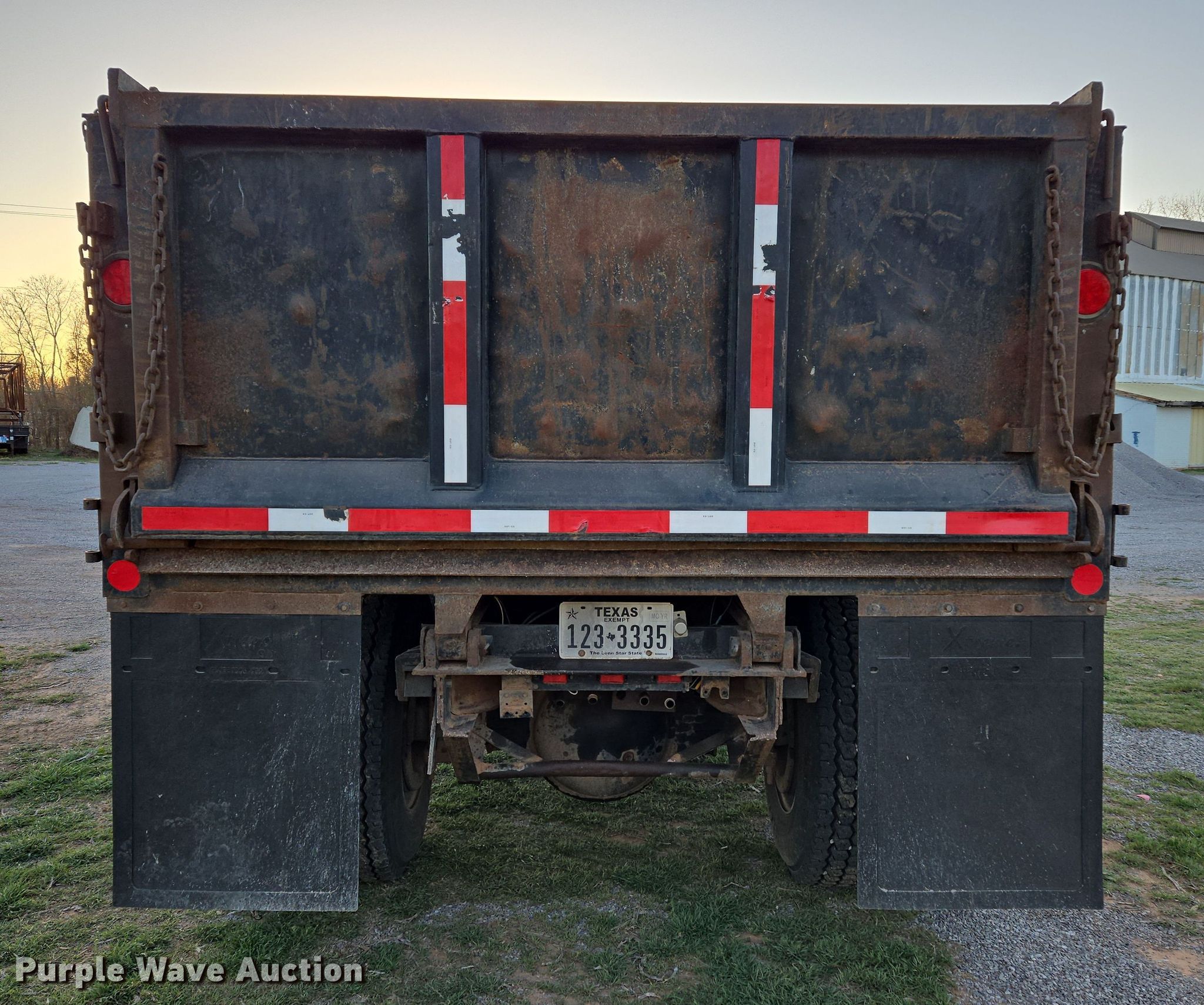 1996 International 4700 dump truck. Miles: 2,359 on odometer Actual mileage unknown, VIN: 1HTSCABN0TH391948. Engine International T444E, Displacement: 7.3L, Cylinders: 8, Fuel type: Diesel. Transmission International, Manual, Speed: 7. Chassis Axles: Single, Suspension: Spring, Brakes: Air, PTO, GVWR: 33,000 lbs FAWR: 12,000 lbs, RAWR: 21,000 lbs. Interior Heat, Cruise control. Features Dump bed 10' L x 8' W, Side height: 36", Bed type: Steel, Ram: Single, End gate: Air operated. Tires Size: 11R22.5. Notes Windshield chipped or cracked, Non-operational air panel control switch, Non-operational speedometer, Non-operational water temp gauge. Texas title. Mileage has not been verified. Exempt will be written in the odometer disclosure on the title. Title distribution may be delayed up to 30 days from verification of funds. City of Burkburnett. Burkburnett, TX 76354