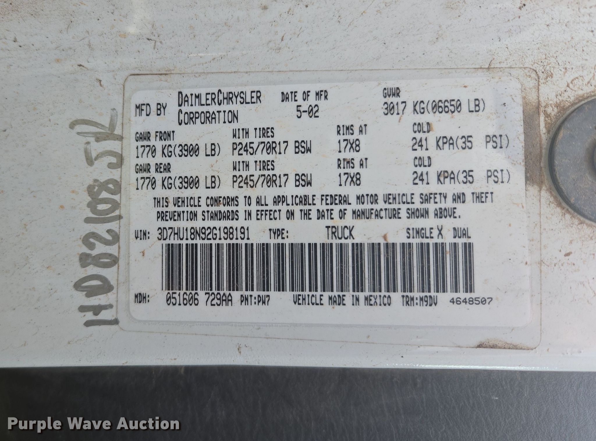 - VIN: 3D7HU18N92G198191
