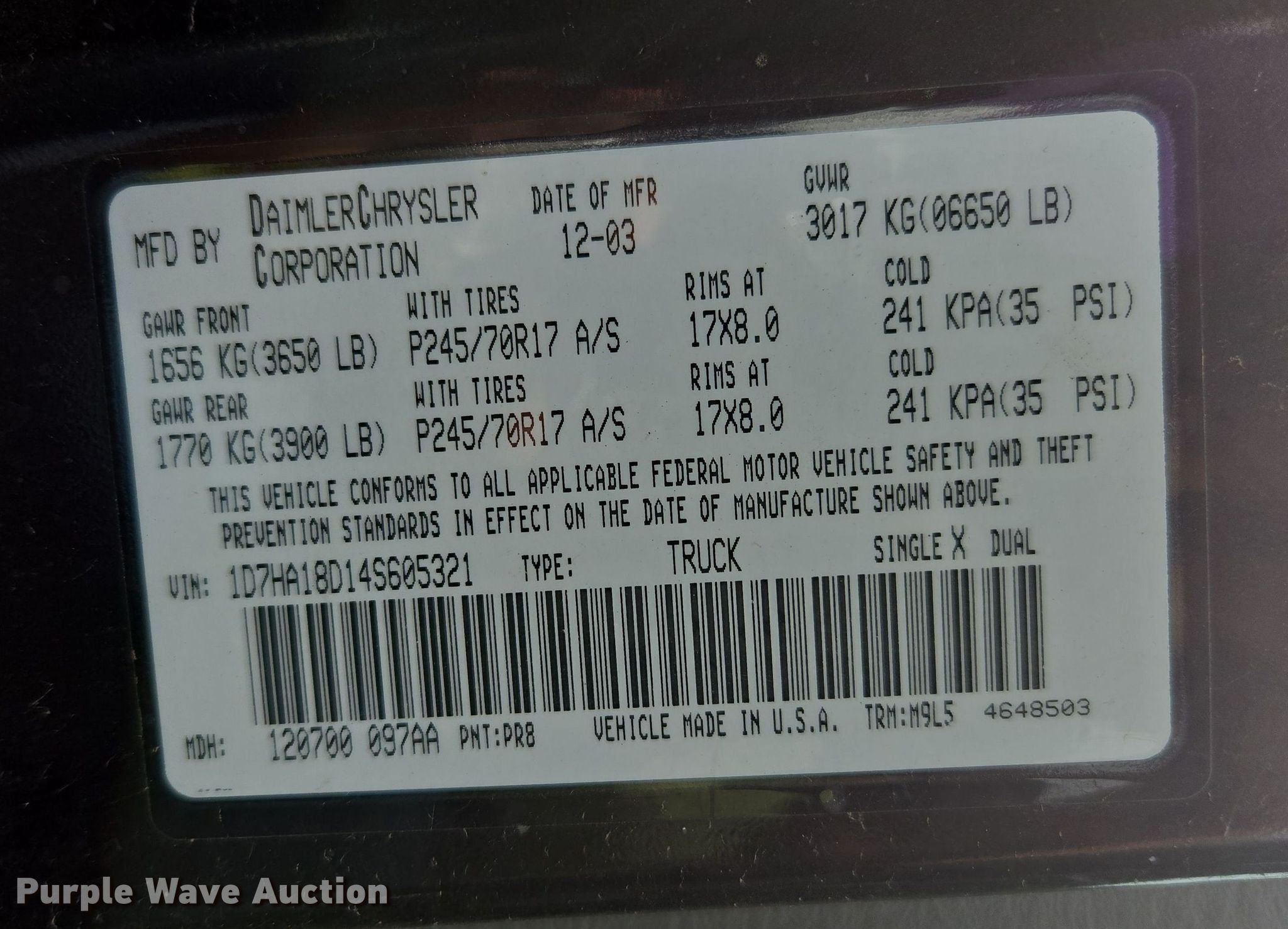 Purple Wave is selling a used 1/2 Ton Pickup or Van in Texas. This item is a 2004 Dodge Ram 1500 Quad Cab pickup truck with the following: Miles: Unknown, VIN: 1D7HA18D14S605321