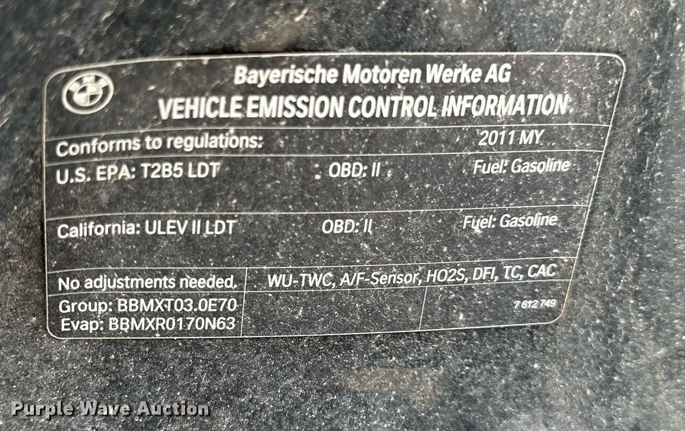 2011 BMW X5 SUV. Miles: 170,522 on odometer, VIN: 5UXZV4C5XBL411459. Engine Displacement: 3.5L L6 DOHC, Cylinders: 6, Fuel type: Gas. Transmission Automatic, All wheel drive. Interior AC, Heat, Seat: Heated, Power driver, Power passenger, Power windows, Power locks, Cruise control, Backup camera, Powered sunroof. Tires Front: 275/40R20, Rear: 315/35R20. Notes Dead battery, Hail damage, Fuel leak , Possible engine issues, turns over but will not start , Unknown operating condition Unit must be towed or hauled. Texas title. Title distribution may be delayed up to 14 days from verification of funds. Wichita County Sheriff's Office. Wichita Falls, TX 76302