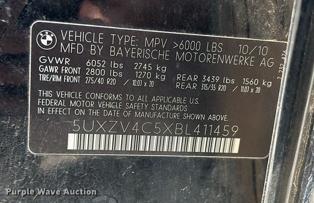 Purple Wave is selling a used Passenger Vehicle in Texas. This item is a 2011 BMW X5 SUV with the following: Miles: 170,522 on odometer, VIN: 5UXZV4C5XBL411459