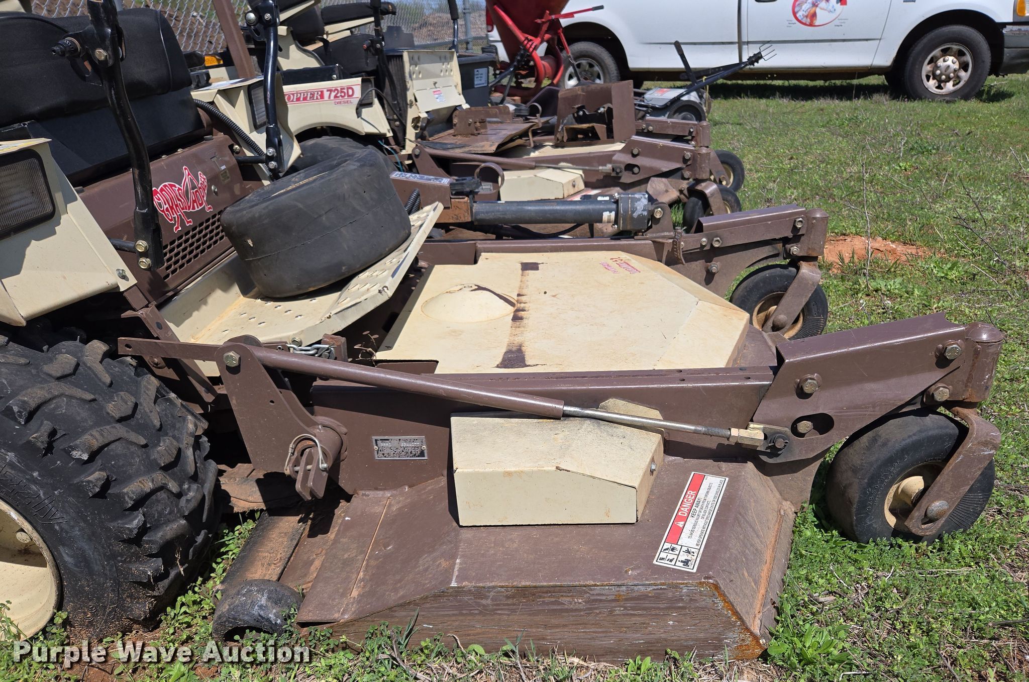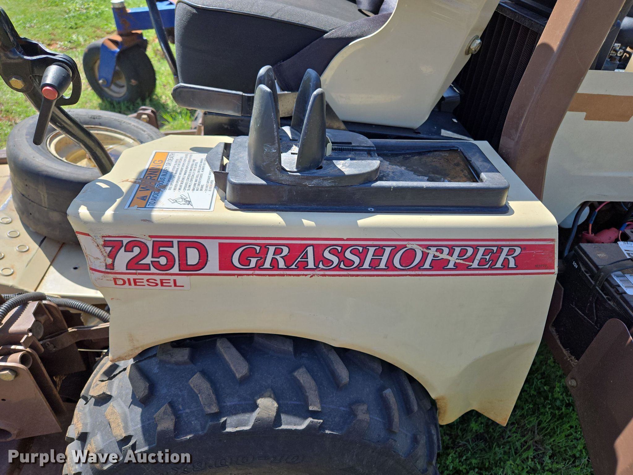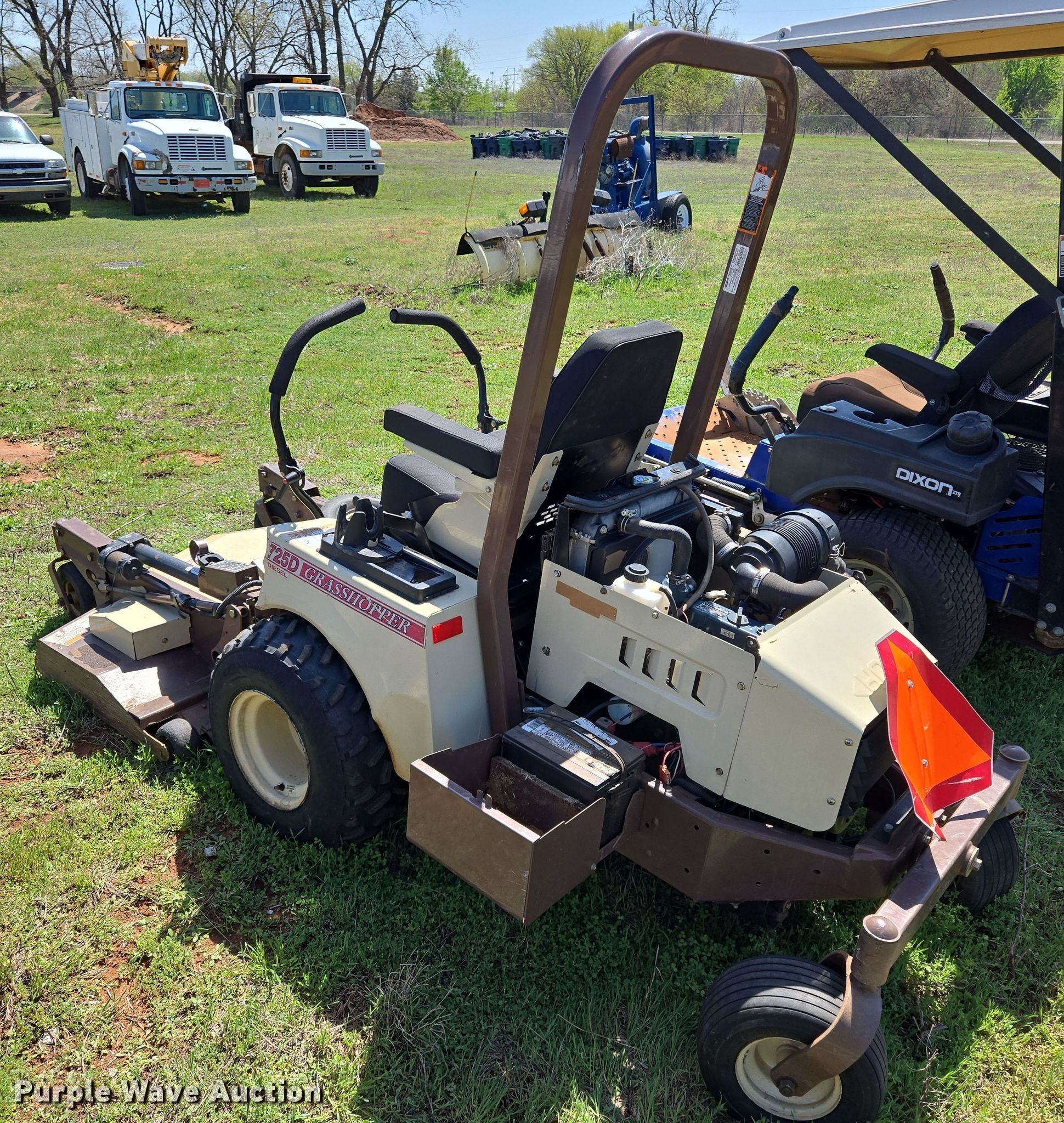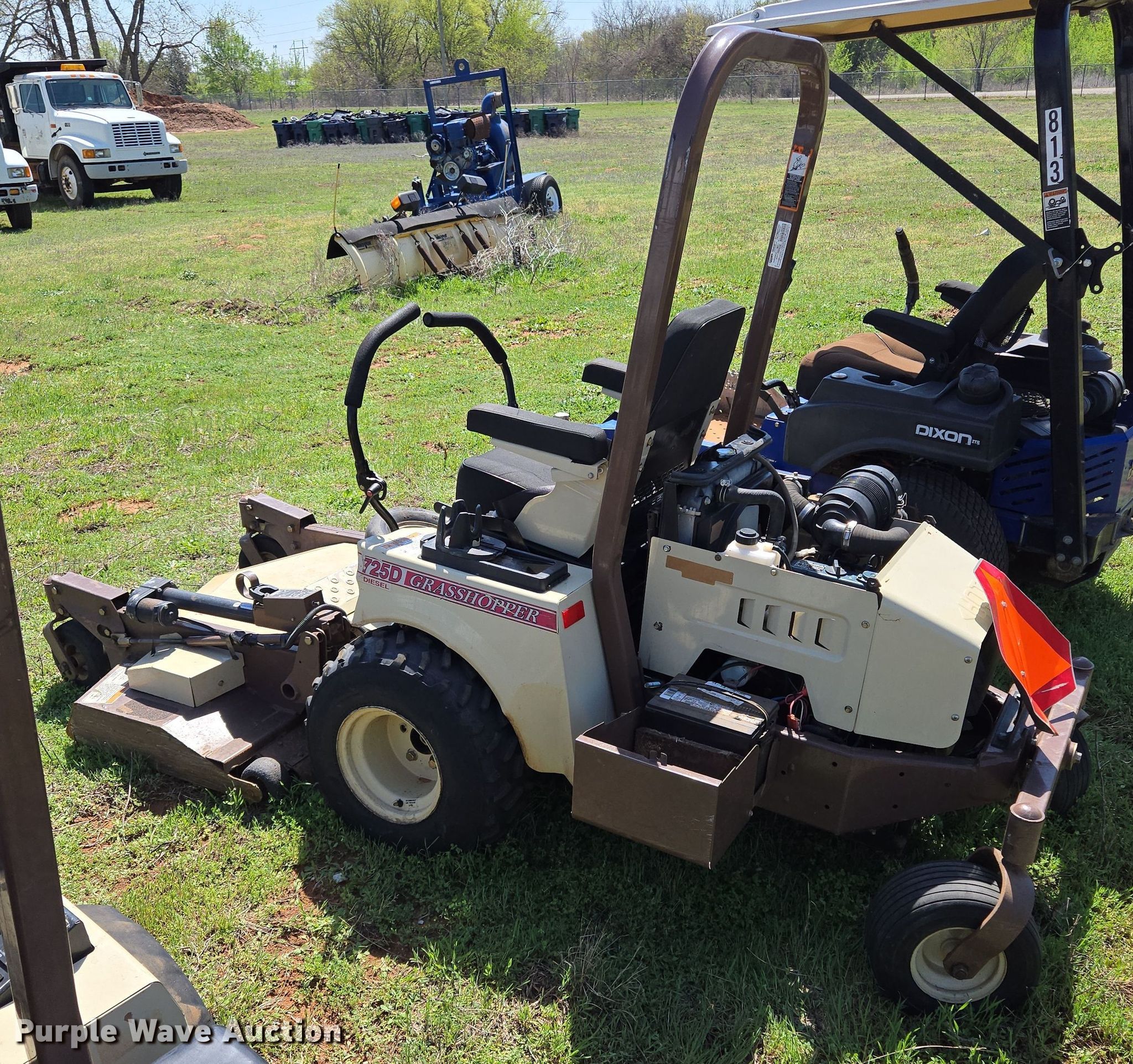 Purple Wave is selling a used Lawn Mower in Oklahoma. This item is a 2013 Grasshopper 725D ZTR lawn mower with the following: Hours: 1,781 on meter, Cutting width: 52", Serial: 6344277