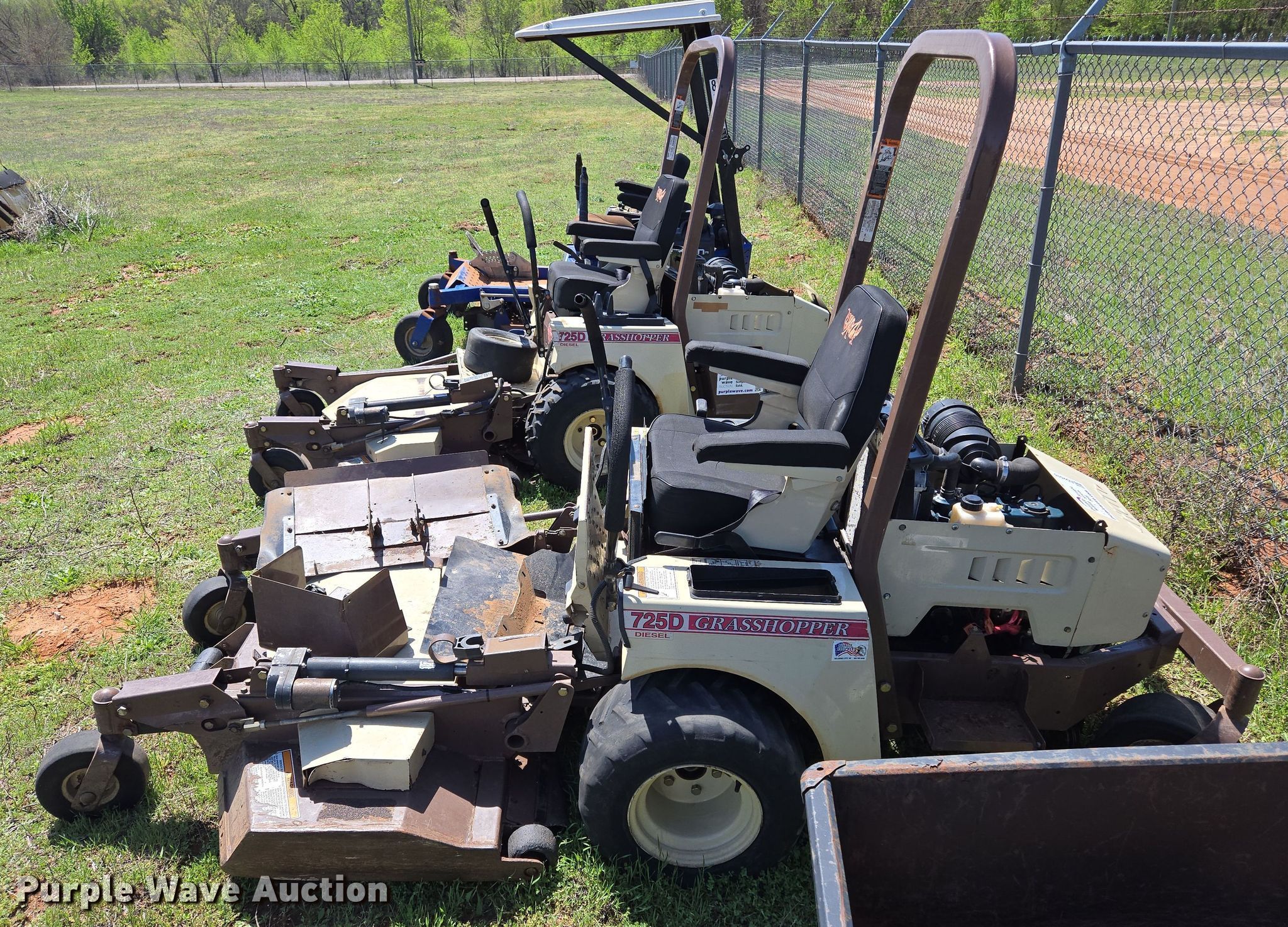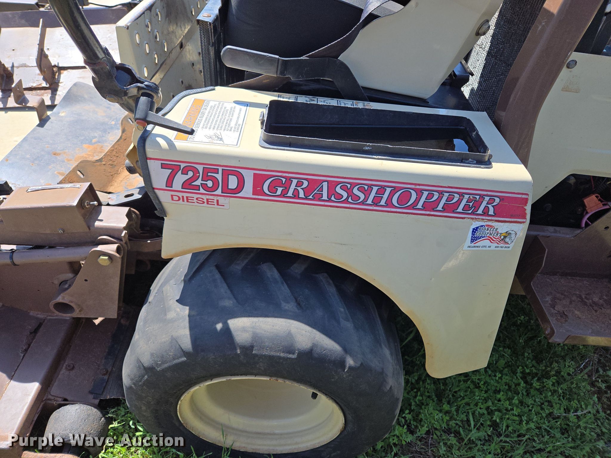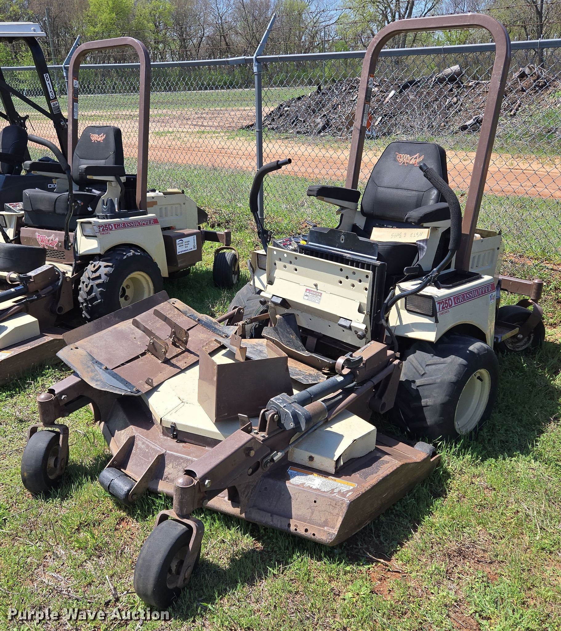 Purple Wave is selling a used Lawn Mower in Oklahoma. This item is a 2013 Grasshopper 725D ZTR lawn mower with the following: Hours: 2,653 on meter, Cutting width: 52", Serial: 6340055