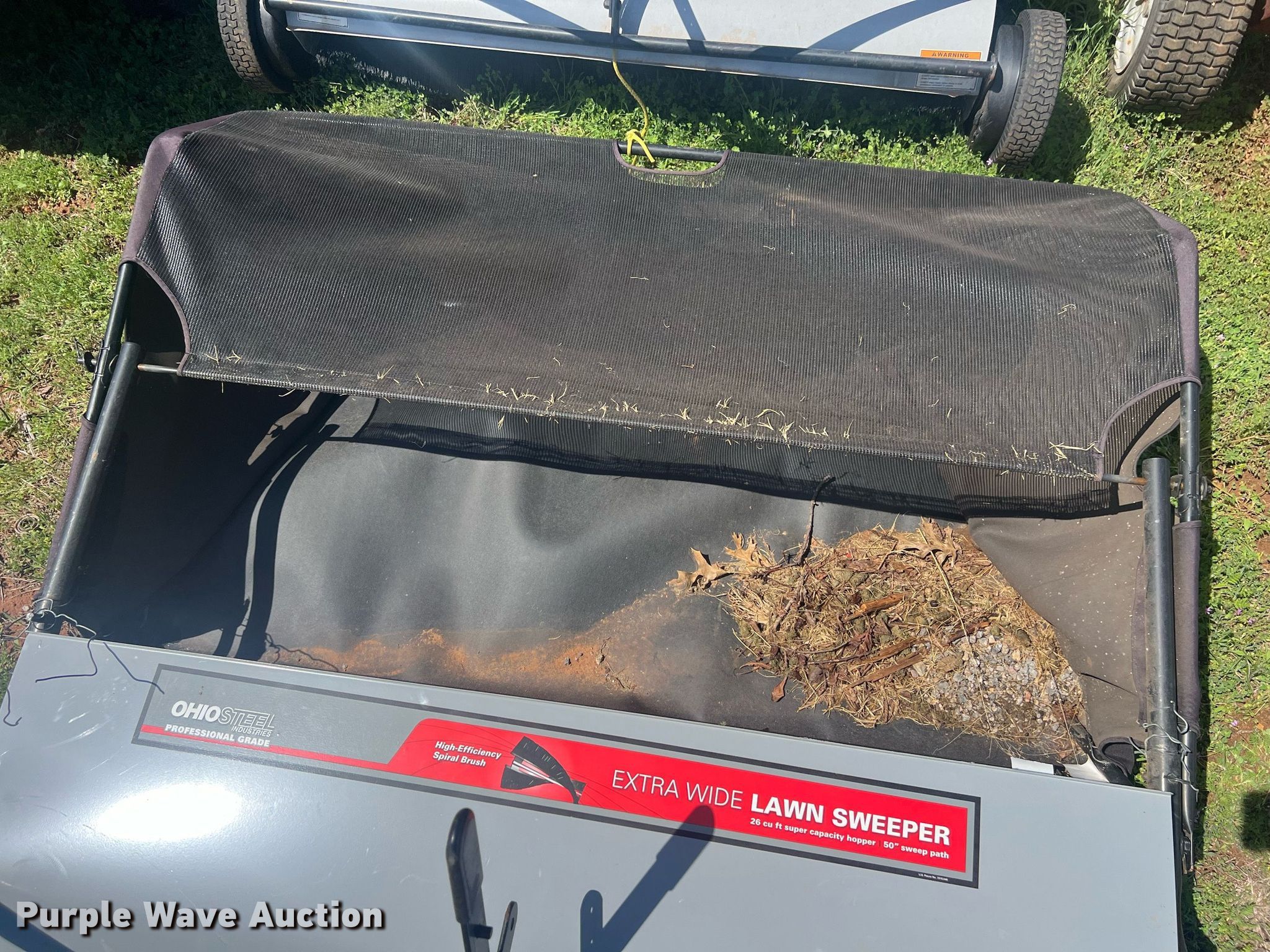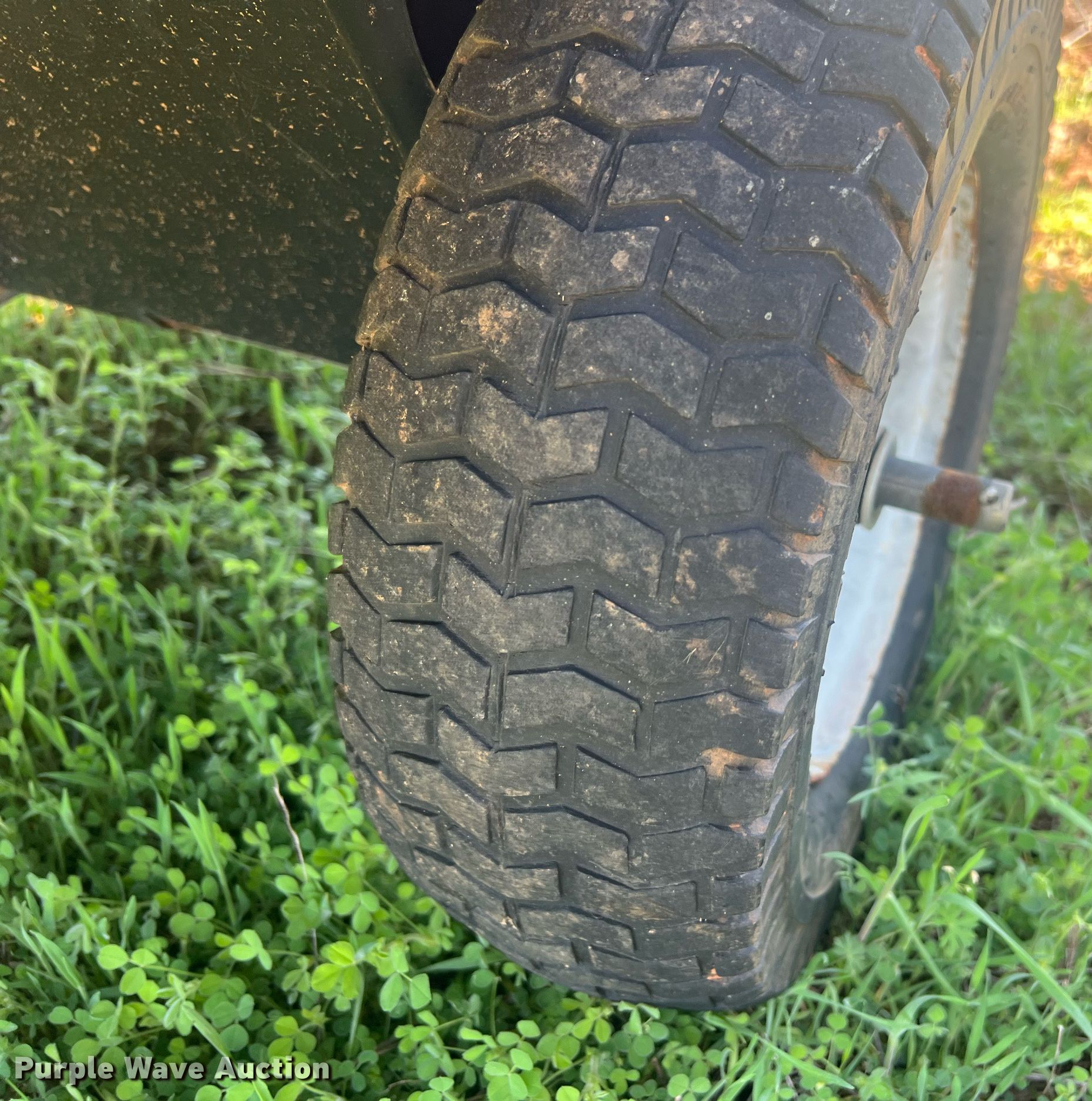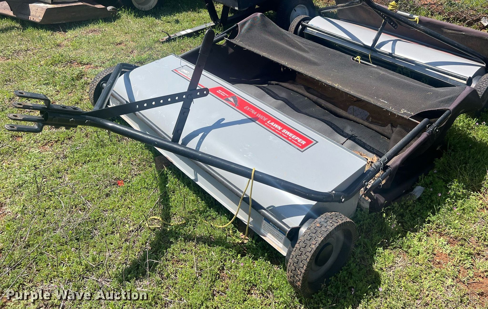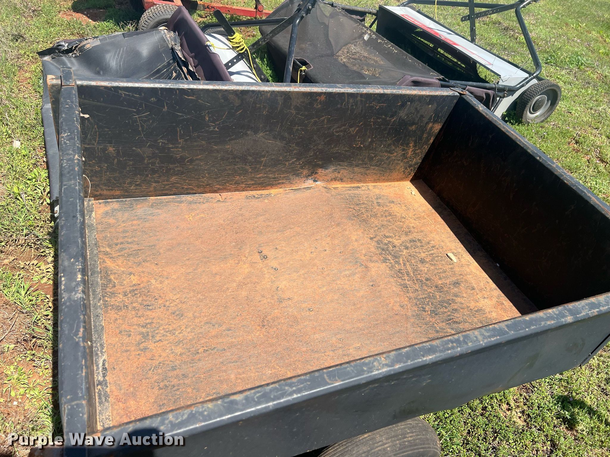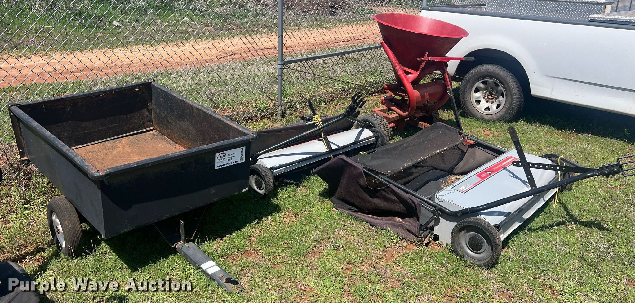 Purple Wave is selling a used Lawn and Garden in Oklahoma. This item is a Lawn equipment with the following: (2) Ohio Steel lawn sweepers, Capacity: 26 cu. ft., Width: 50", Lawn dump trailer, Dimensions: 48" L x 32" W, Hitch: Pin, Tires: 4.80/4.00-8, Spreader, Width: 36", Ball hitch: 1 7/8"