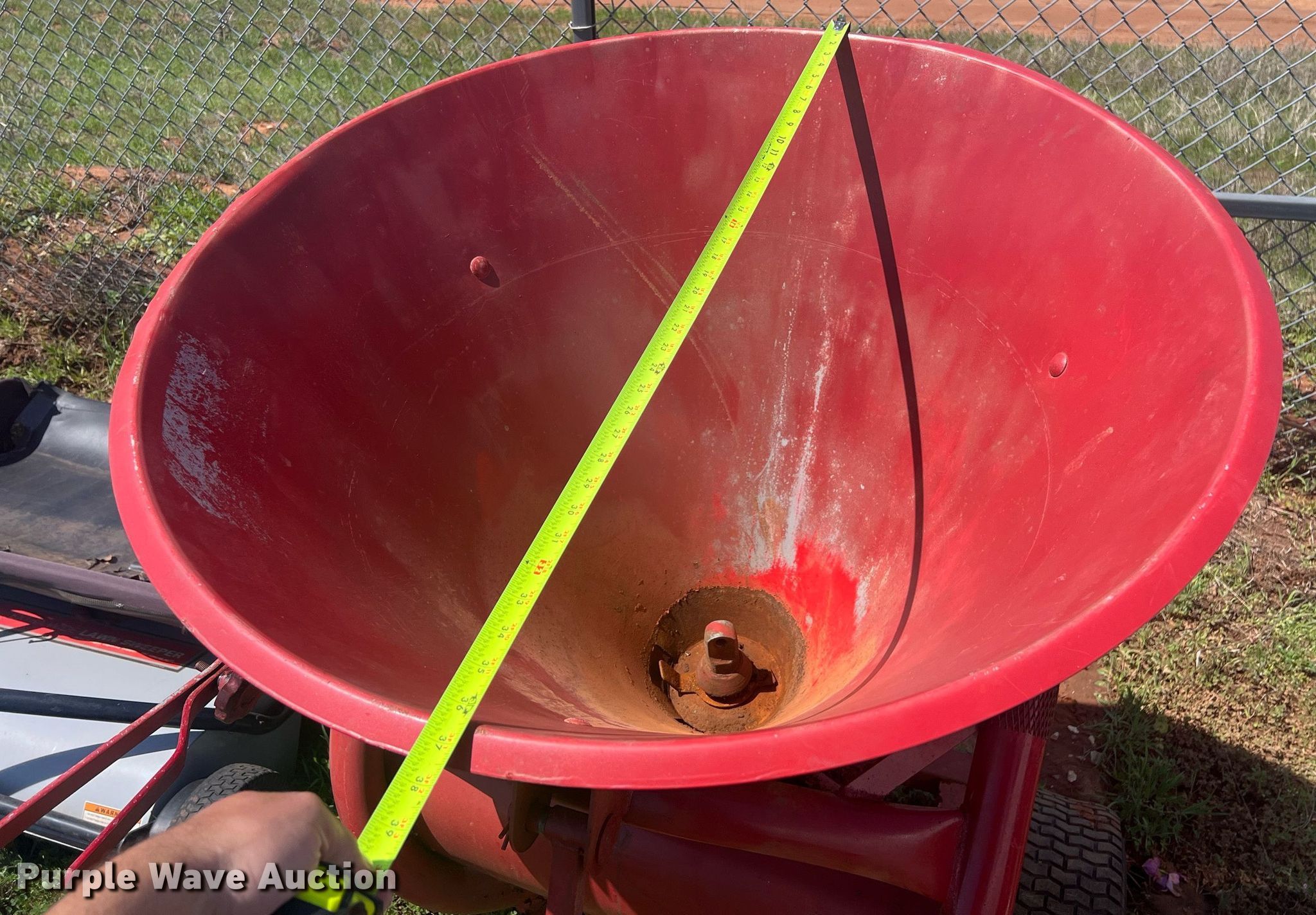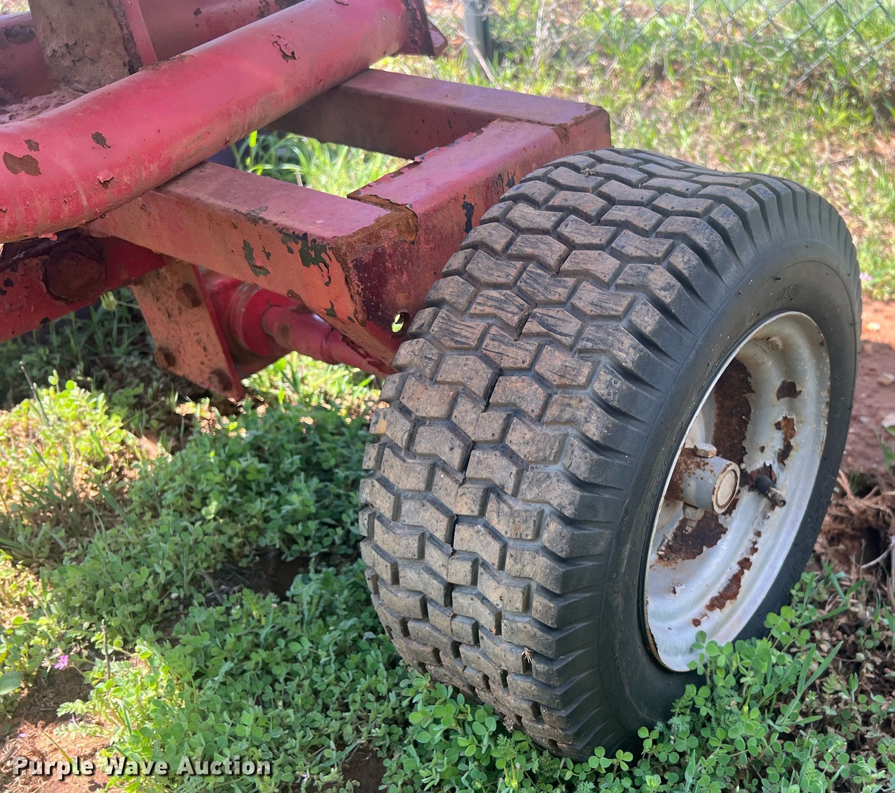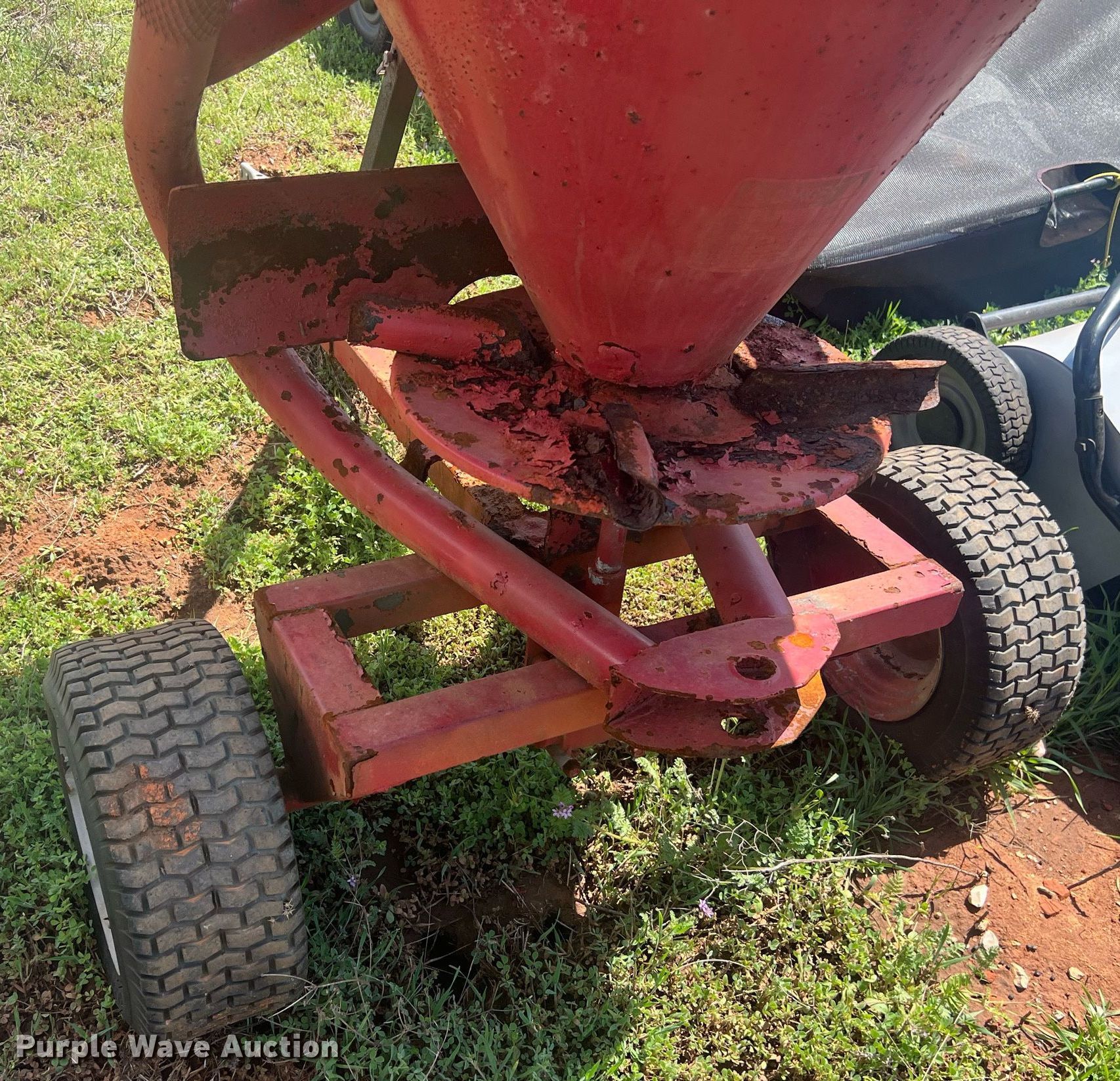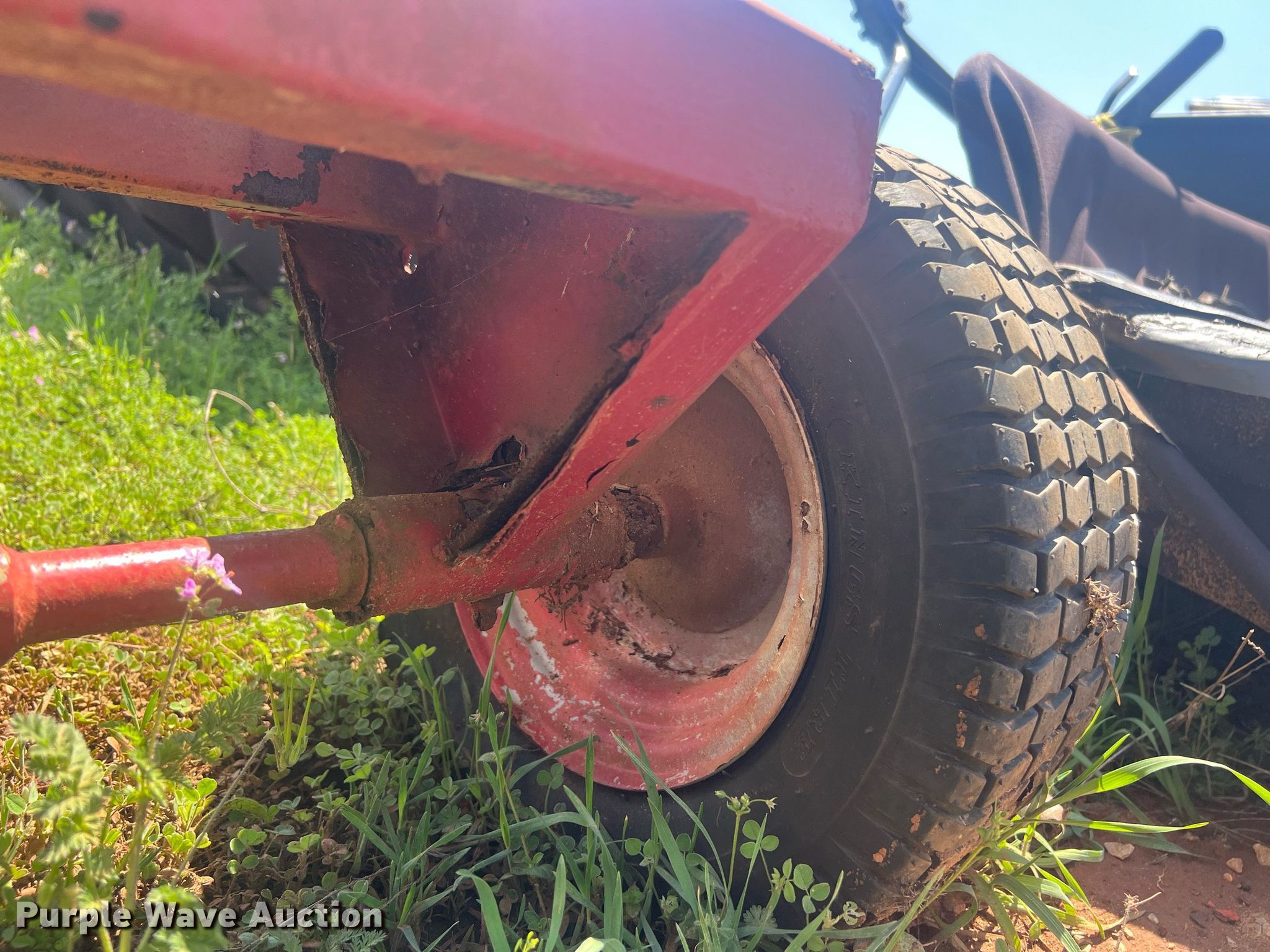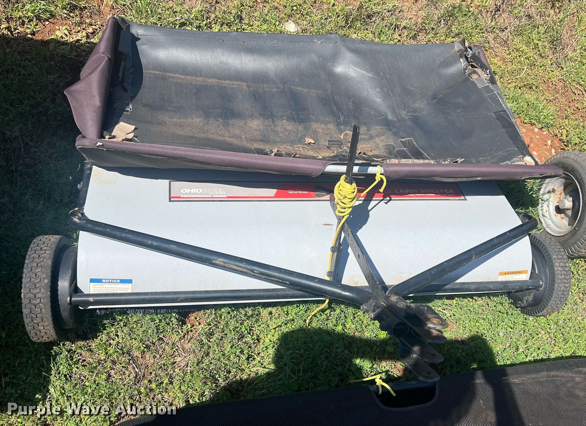 Purple Wave is selling a used Lawn and Garden in Oklahoma. This item is a Lawn equipment with the following: (2) Ohio Steel lawn sweepers, Capacity: 26 cu. ft., Width: 50", Lawn dump trailer, Dimensions: 48" L x 32" W, Hitch: Pin, Tires: 4.80/4.00-8, Spreader, Width: 36", Ball hitch: 1 7/8"