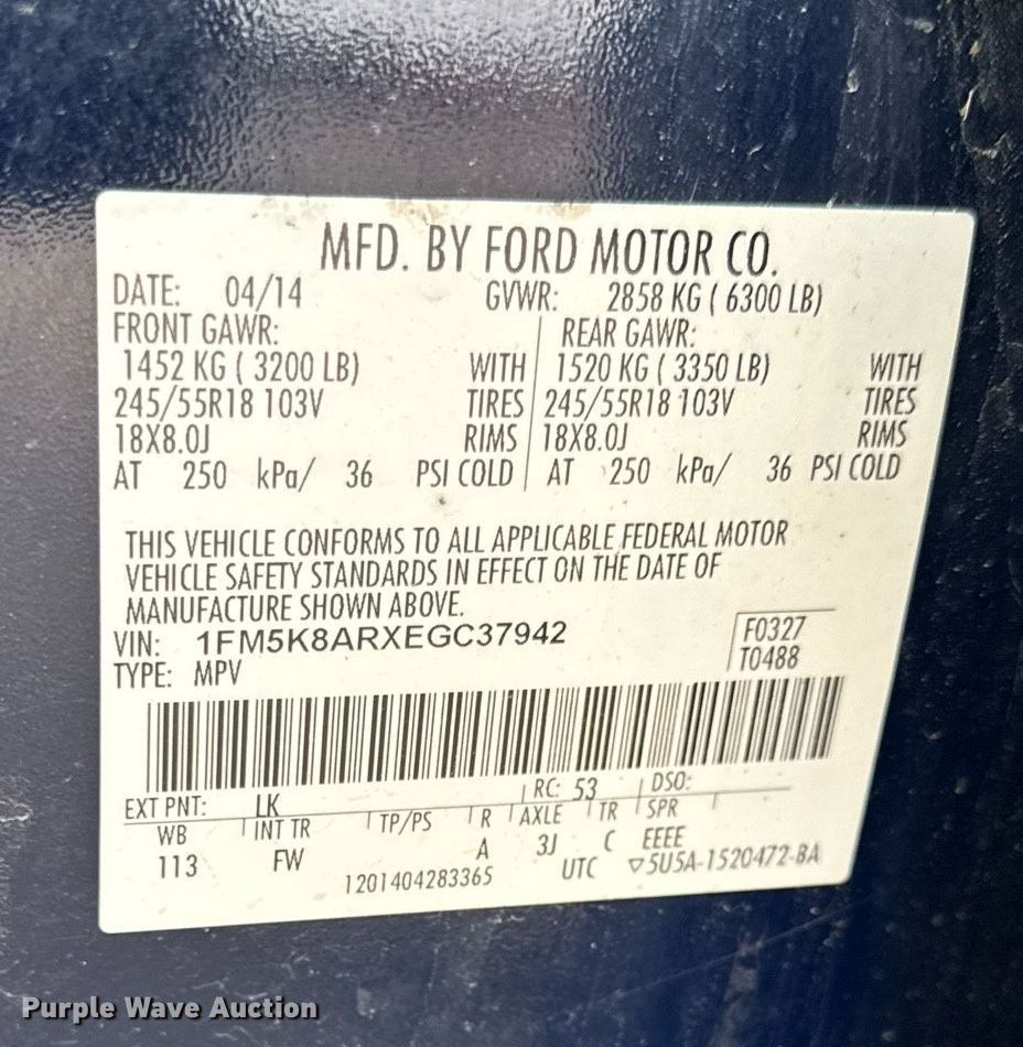 2014 Ford Explorer Police Interceptor SUV. Miles: 133,924 on odometer, VIN: 1FM5K8ARXEGC37942. Engine Displacement: 3.7L V6 DOHC, Cylinders: 6, Fuel type: Gas. Transmission Automatic, All wheel drive. Interior AC, Heat, Seat: Power driver, Power windows, Power locks, Cruise control. Tires Size: 245/55R18. Notes Center console missing. Kansas title. Title distribution may be delayed up to 14 days from verification of funds. Leavenworth County Sheriff. Leavenworth, KS 66048