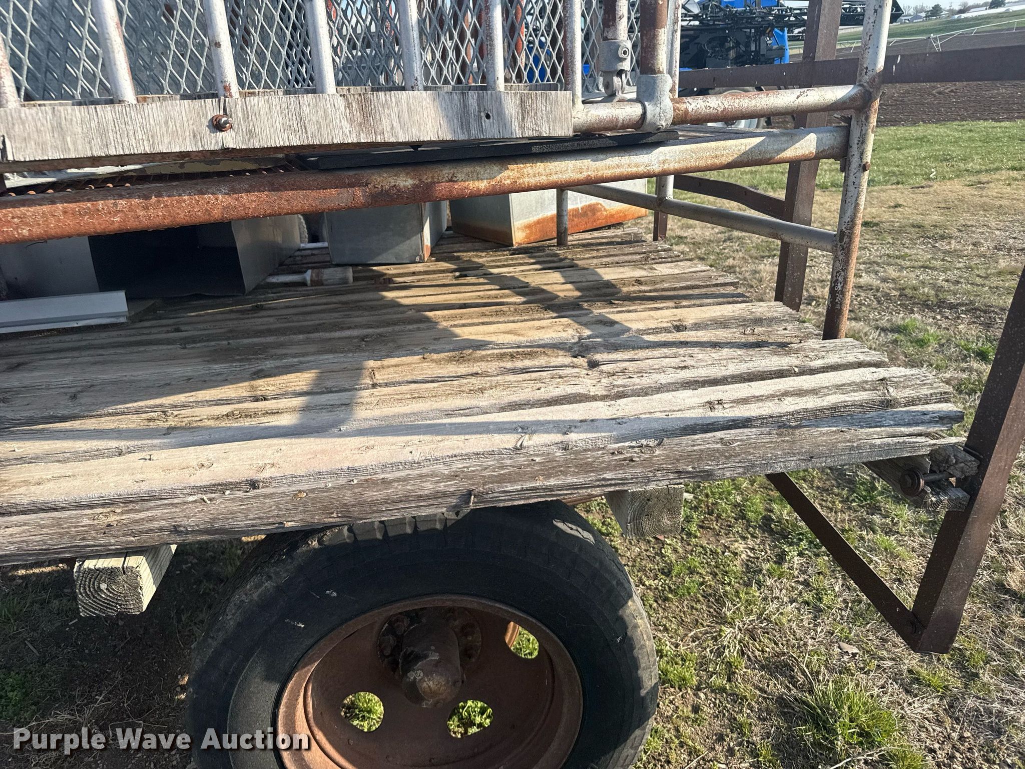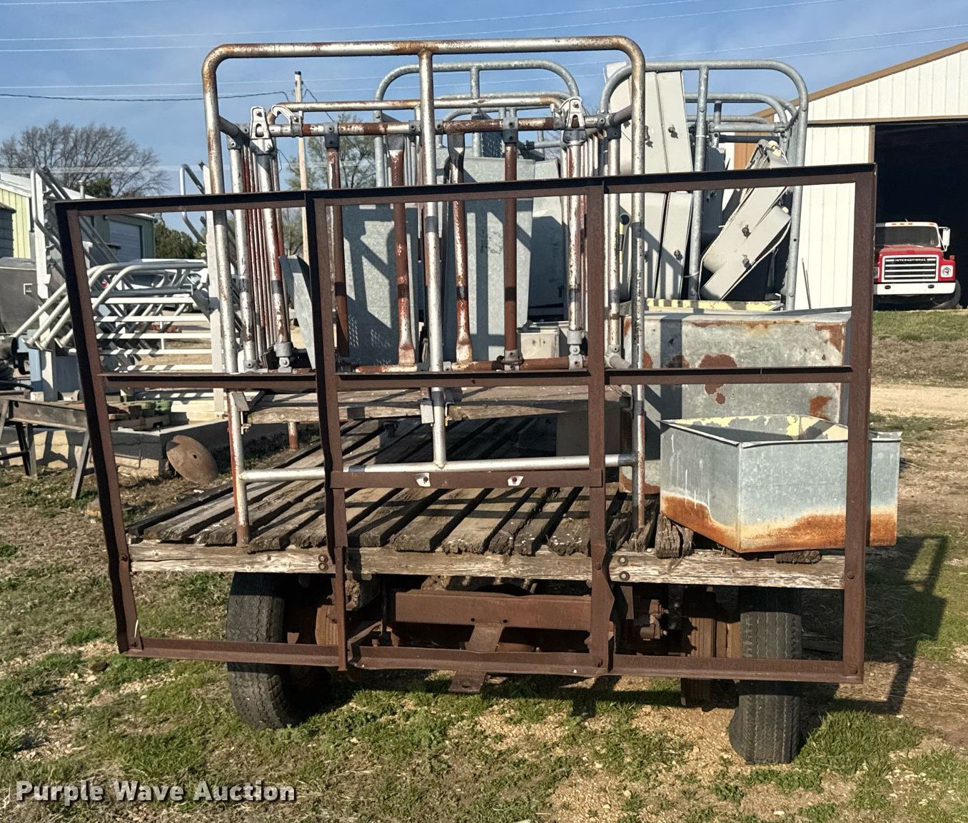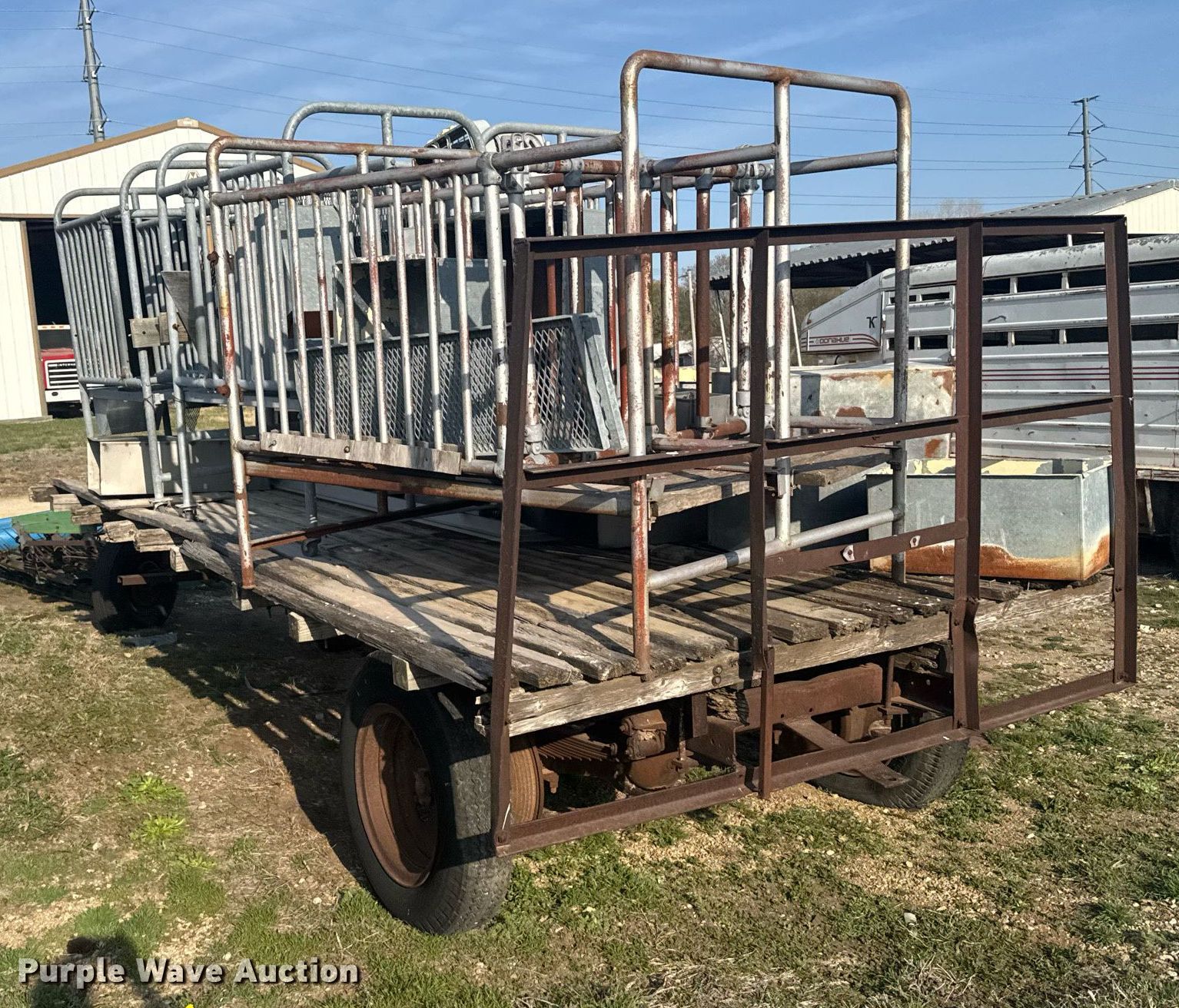 Purple Wave is selling a used Hay Handling in Kansas. This item is a Hay wagon with the following: Overall: 18' L x 96" W, Deck: 13' L x 96" W