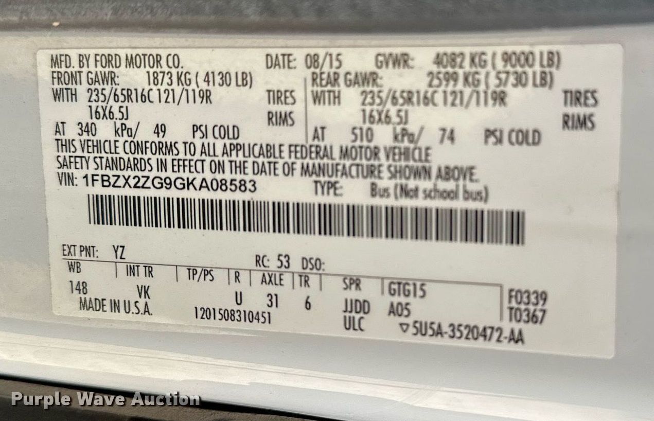 Purple Wave is selling a used Passenger Vehicle in Kansas. This item is a 2016 Ford Transit 350 van with the following: Miles: 181,597 on odometer, VIN: 1FBZX2ZG9GKA08583