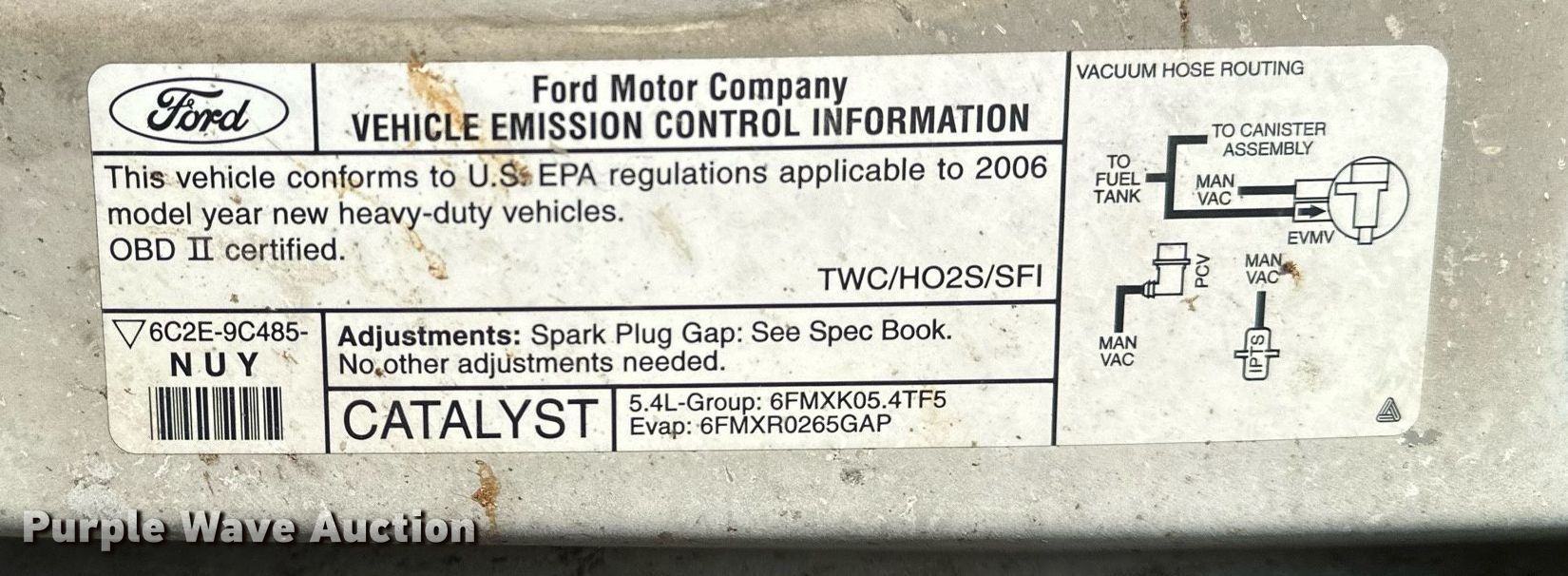 2006 Ford E350 Super Duty van. Miles: 191,564 on odometer, VIN: 1FBSS31L46DA24224. Engine Displacement: 5.4L V8 SOHC, Cylinders: 8, Fuel type: Gas. Transmission Automatic. Interior AC, Heat, Cruise control. Tires Size: 245/75R16. Kansas title. KSU Animal Sciences. Manhattan, KS 66502
