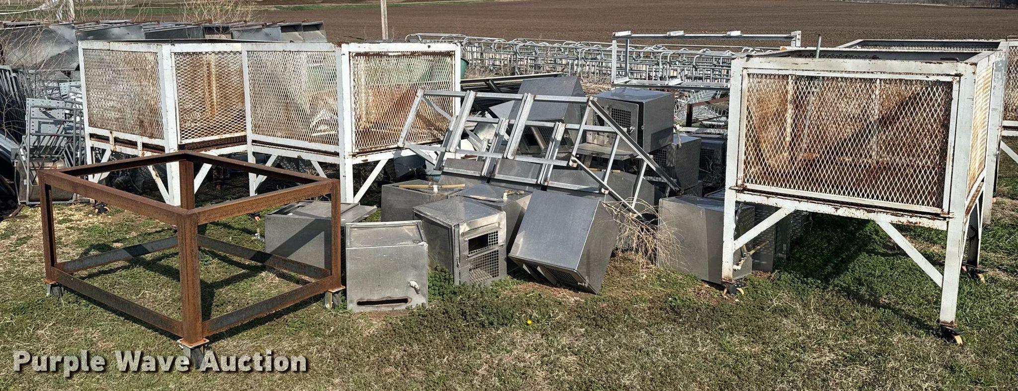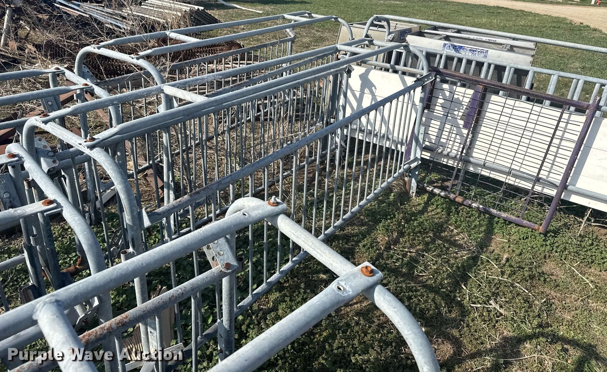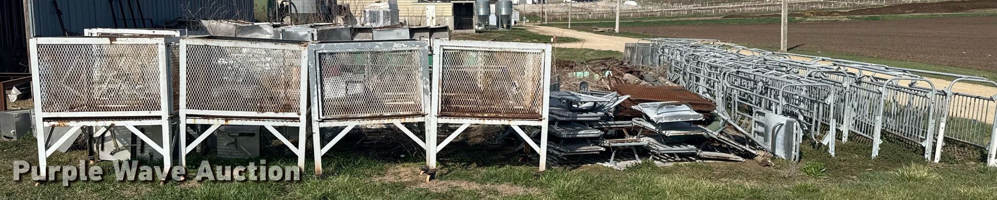 Purple Wave is selling a used Livestock Equip. in Kansas. This item is a Livestock equipment with the following: Approx. 19 livestock chutes, Approx. 6 rolling cages, 4' x 4', Feeders, Approx. 11 plastic, Approx. 3 stainless steel, Gates, Fence panels