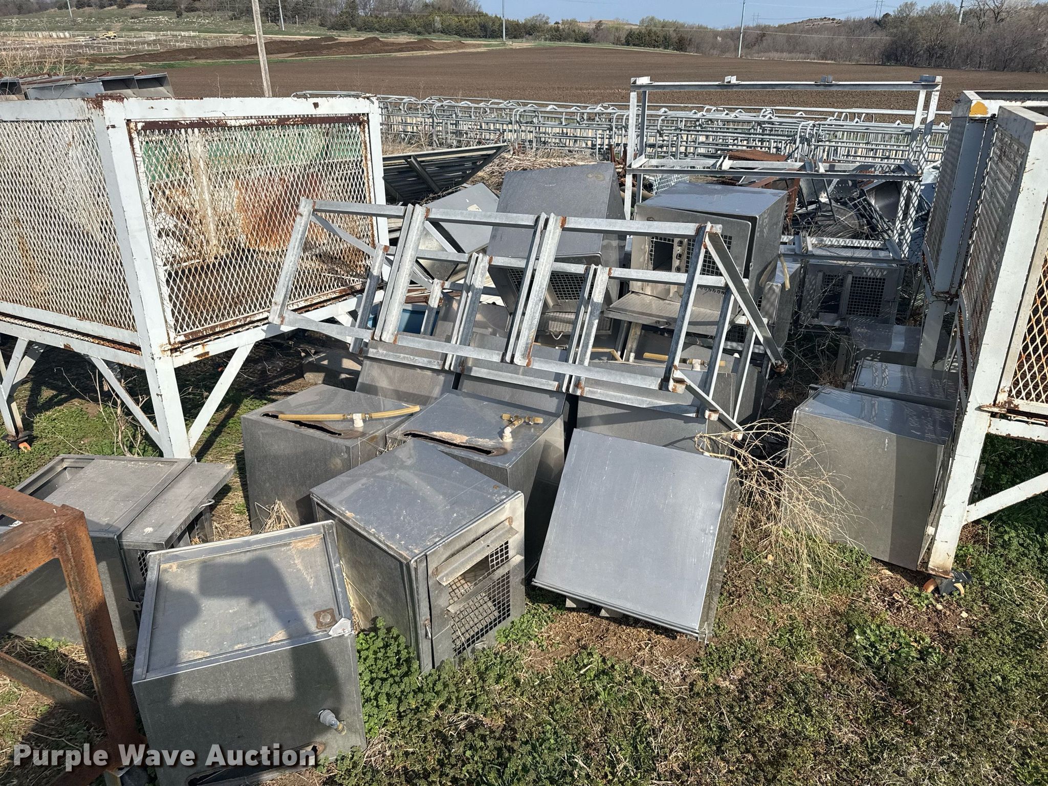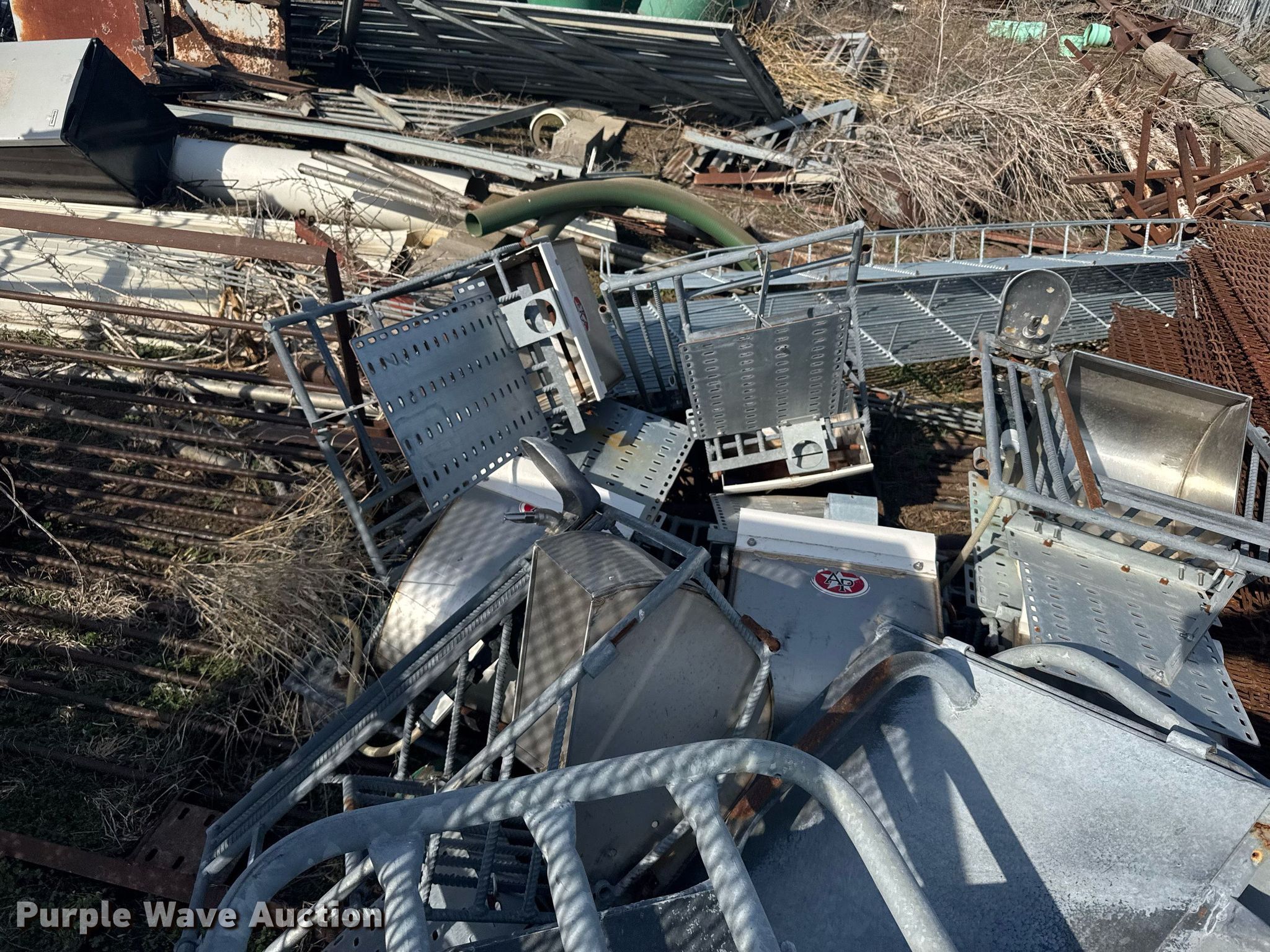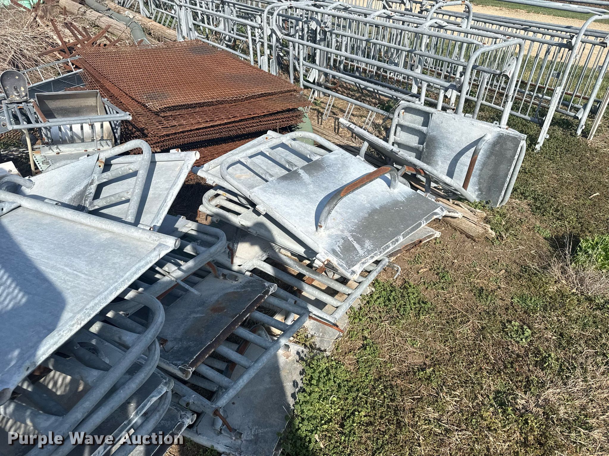 Purple Wave is selling a used Livestock Equip. in Kansas. This item is a Livestock equipment with the following: Approx. 19 livestock chutes, Approx. 6 rolling cages, 4' x 4', Feeders, Approx. 11 plastic, Approx. 3 stainless steel, Gates, Fence panels