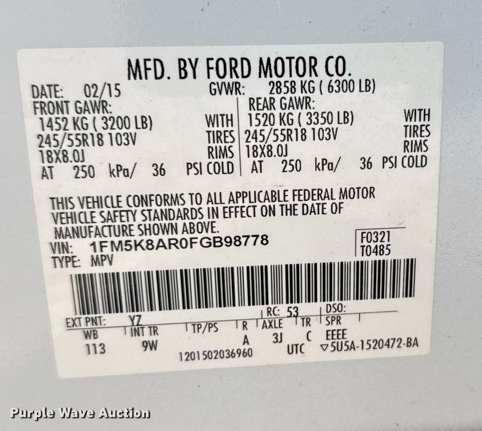 Purple Wave is selling a used Passenger Vehicle in Kansas. This item is a 2015 Ford Explorer Police Interceptor SUV with the following: Miles: 135,607 on odometer, VIN: 1FM5K8AR0FGB98778