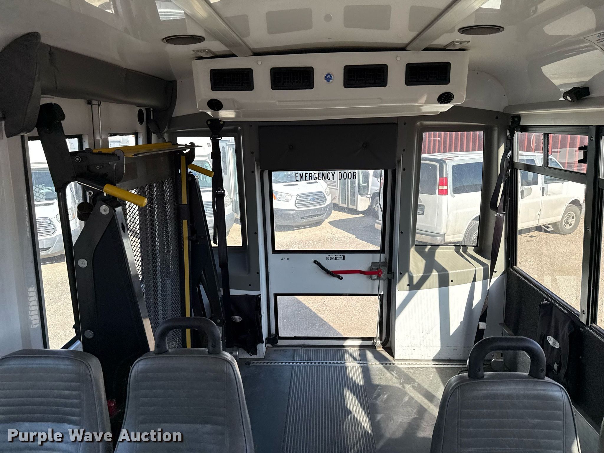 2013 Chevrolet Express G4500 shuttle bus. Miles: 234,802 on odometer, VIN: 1GB6G5BG5D1192145, Unit #: 2145. Engine Displacement: 6.0L, Cylinders: 8, Fuel type: Gas, HP: 324. Transmission Automatic. Chassis Axles: Single, Suspension: Spring, Brakes: Hydraulic, GVWR: 14,200 lbs. Interior AC, Heat, Cruise control, Auxiliary controls, Passengers: 12, Wheelchair lift. Tires Size: LT225/75R16. Texas title. Alamo Area Council of Governments. San Antonio, TX 78216