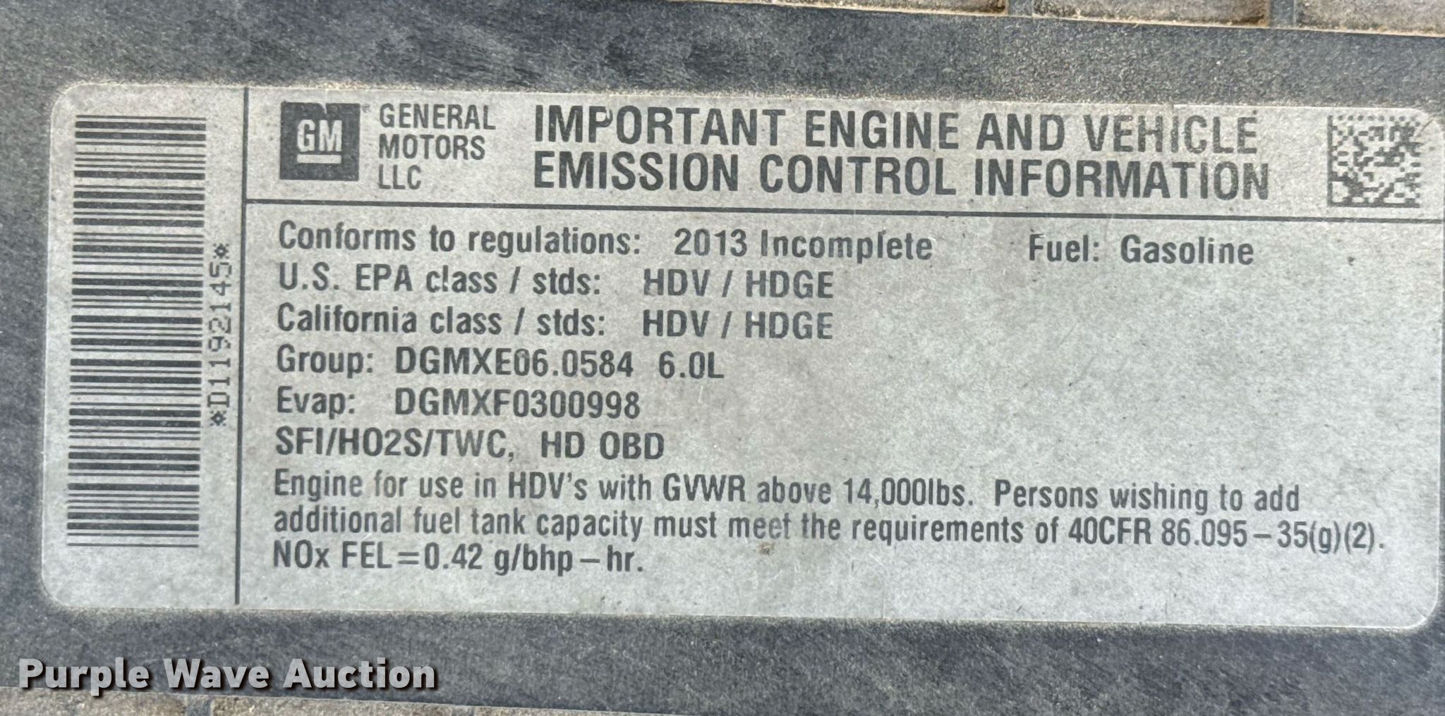 • VIN: 1GB6G5BG5D1192145