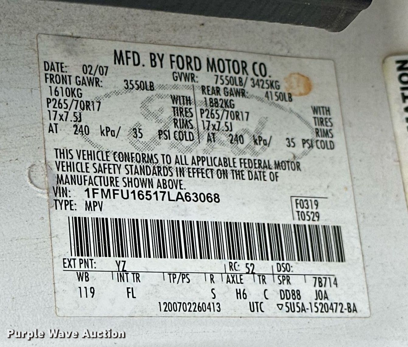 2007 Ford Expedition XLT SUV. Miles: 151,448 on odometer, VIN: 1FMFU16517LA63068. Engine Displacement: 5.4L V8 SOHC, Cylinders: 8, Fuel type: Gas. Transmission Automatic, Four wheel drive. Interior AC, Heat, Seat: Power driver, Power windows, Power locks, Cruise control. Tires Size: 265/70R17. Notes Storage box included, Dash warning indicator: TPMS, Dead battery, Center console missing. Oklahoma title. Title distribution may be delayed up to 30 days from verification of funds. Cleveland County. 2550 West Franklin Road. Norman, OK 73069
