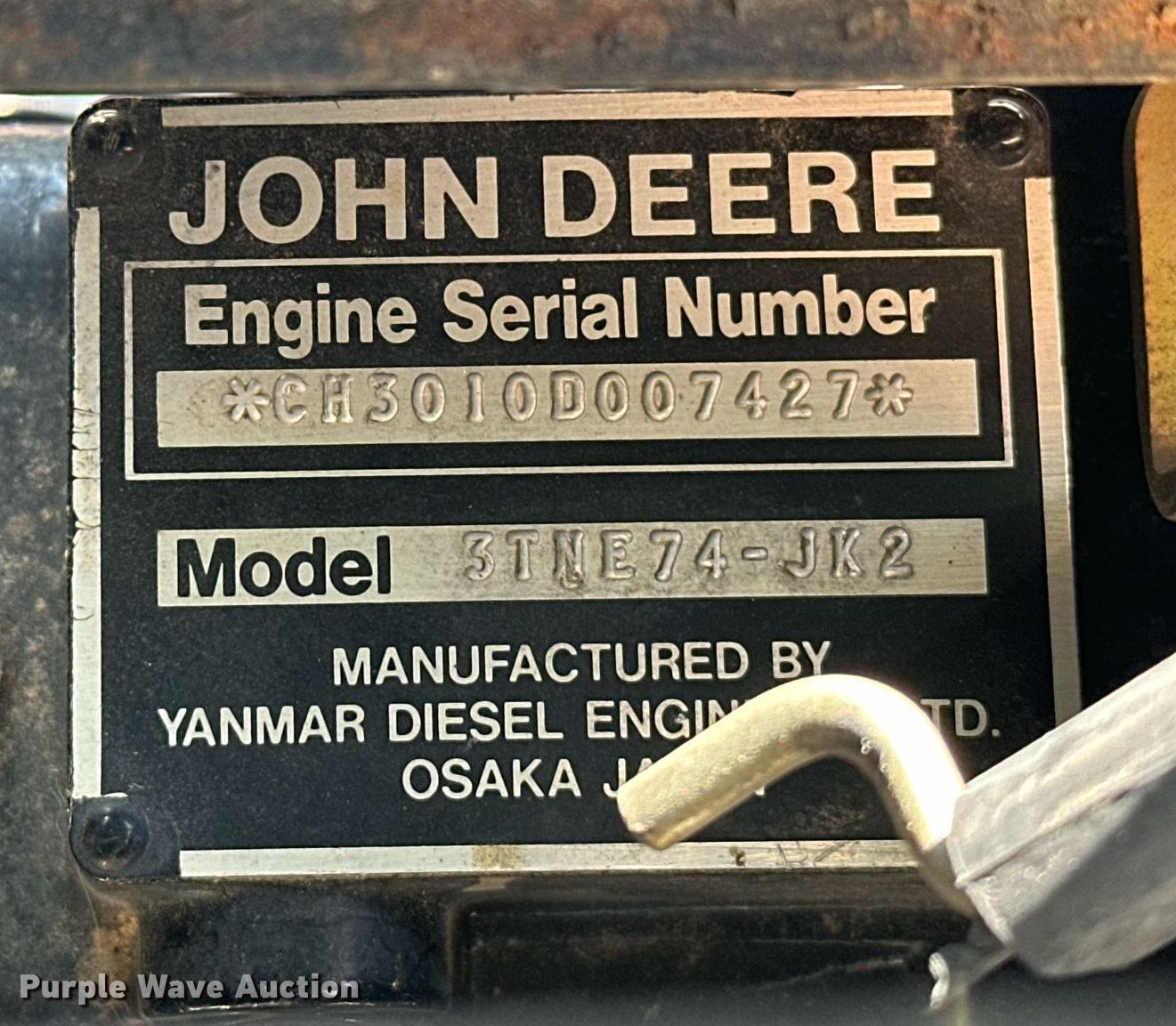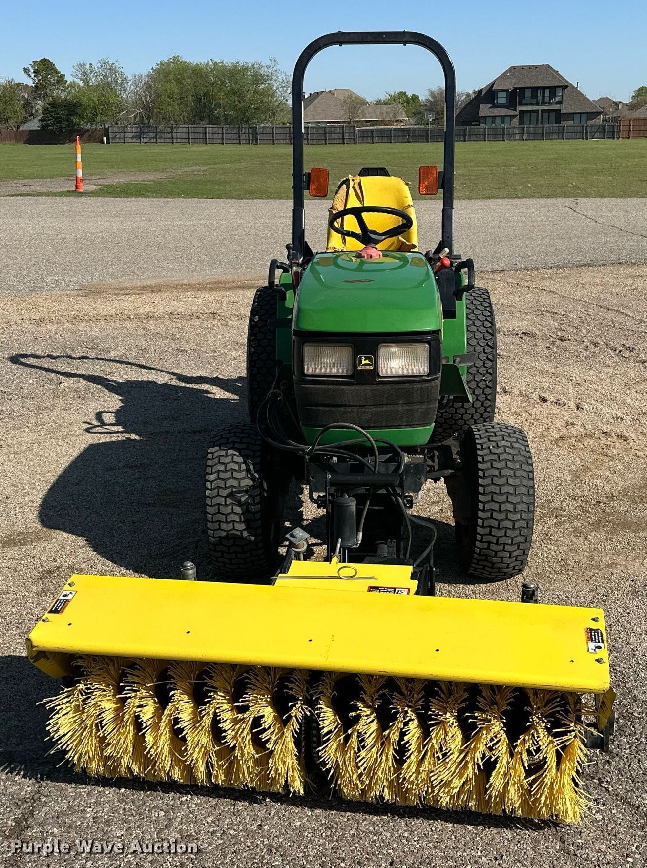 1999 John Deere 4100 MFWD tractor. Hours: 697 on meter, Serial: LV4100H212577. Engine Yanmar 3TNE74-JK2, Serial: CH3010D007427, Cylinders: 3, Fuel type: Diesel. Transmission Hydrostatic, 2F - 2R, Differential lock. Features PTO: 540, Three point Top link, Quick attach, Front blade John Deere 54 Quick Hitch Blade, Width: 54", Height: 17", Blade controls: Joystick, 2018 John Deere 52 Quick Hitch Broom Serial: 1M052RBXKJ0028348, Width: 52". Tires Front: 23X8.50-12, Rear: 315/75D15. Cleveland County. 615 E Robinson St. Norman, OK 73071