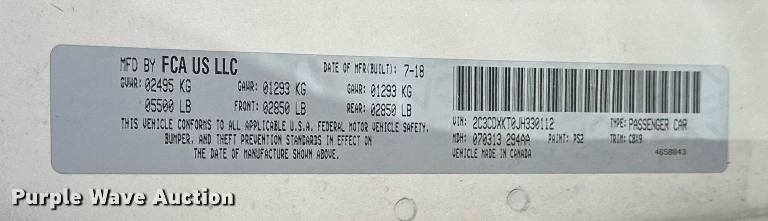 Purple Wave is selling a used Passenger Vehicle in Oklahoma. This item is a 2018 Dodge Charger Police with the following: Miles: 148,975 on odometer, Miles or hours may vary, unit still in use, VIN: 2C3CDXKT0JH330112