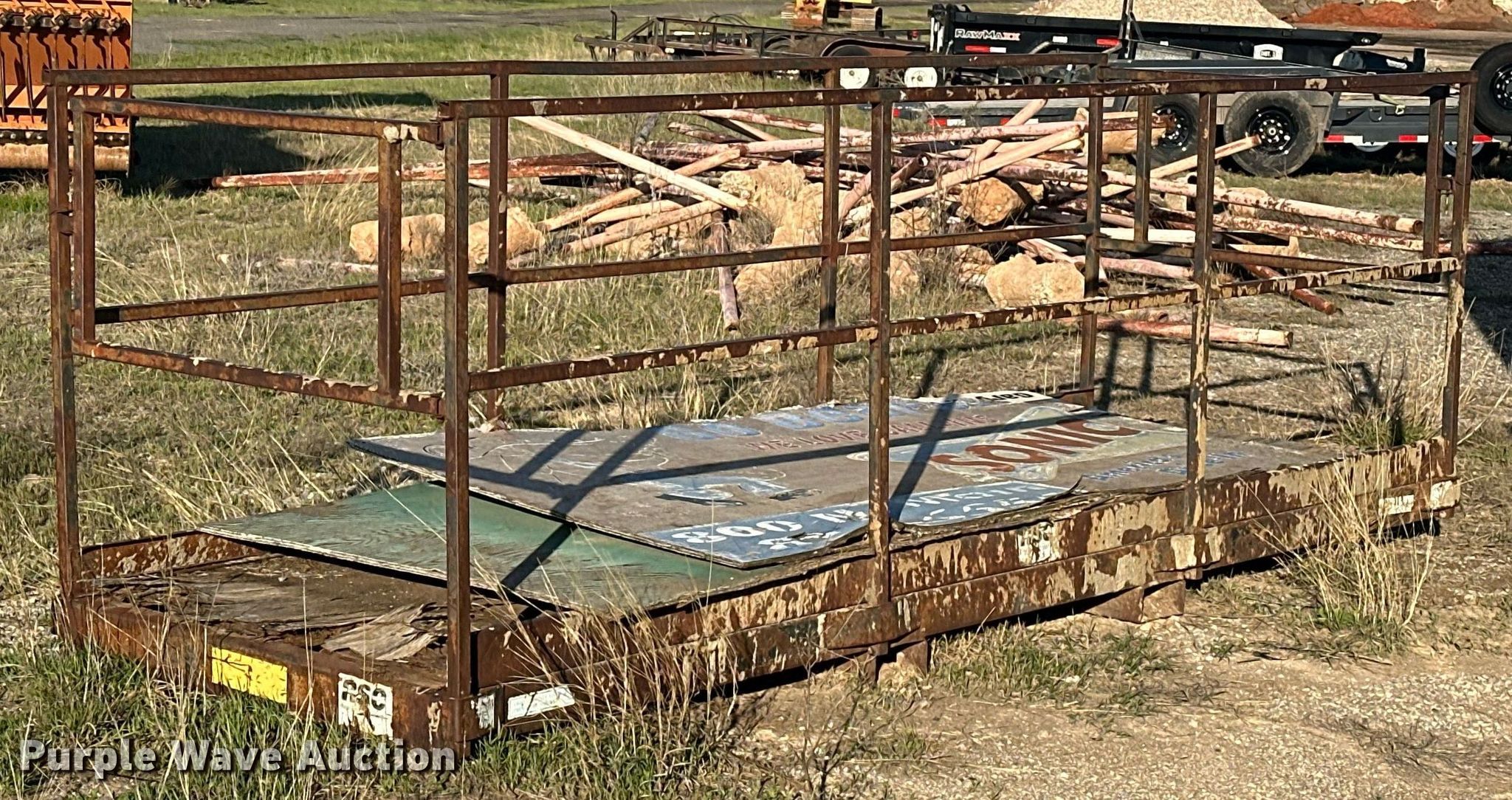 Purple Wave is selling a used Forklift Attach. in Oklahoma. This item is a Man basket with the following: 12' L x 48" W x 41" H