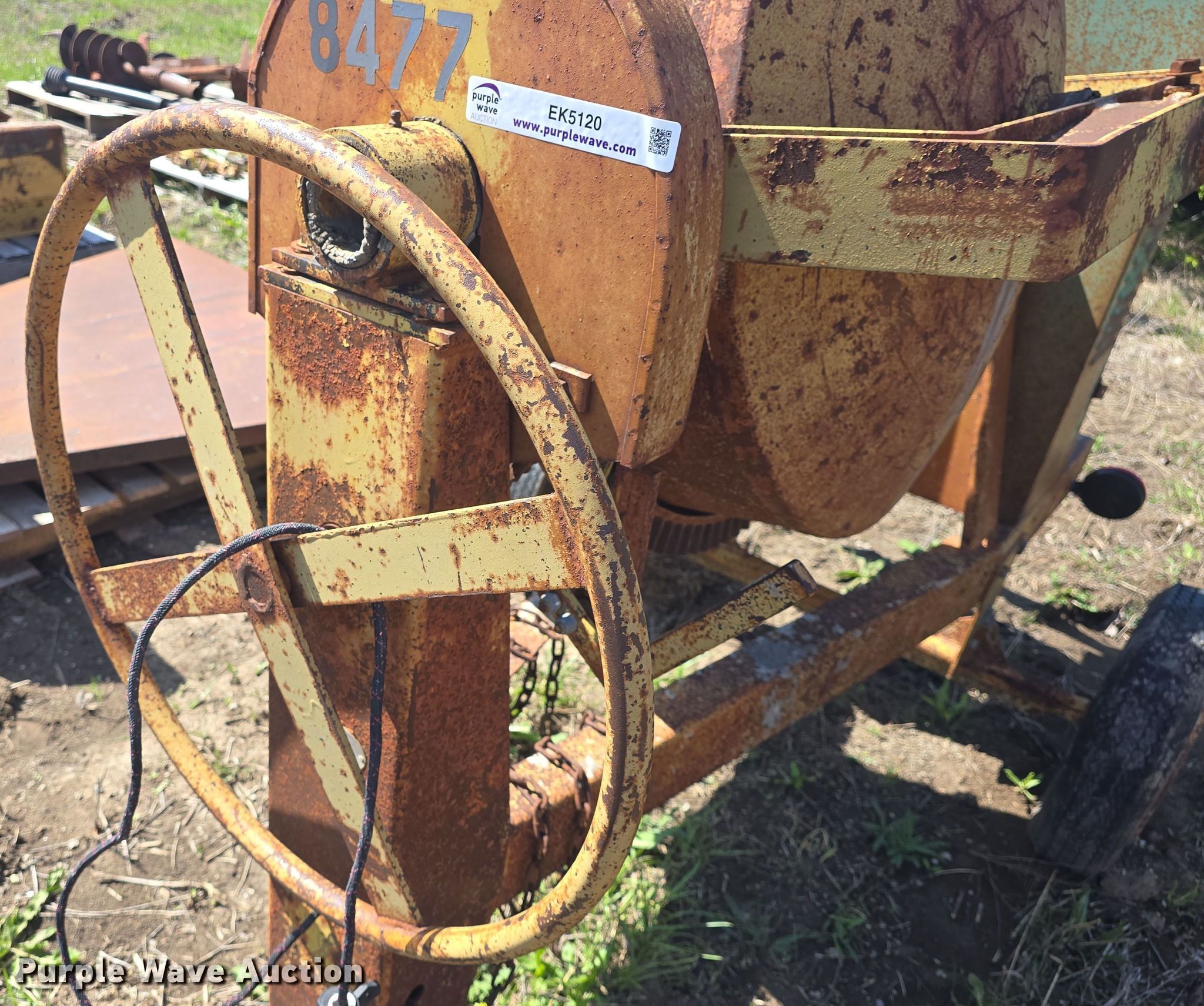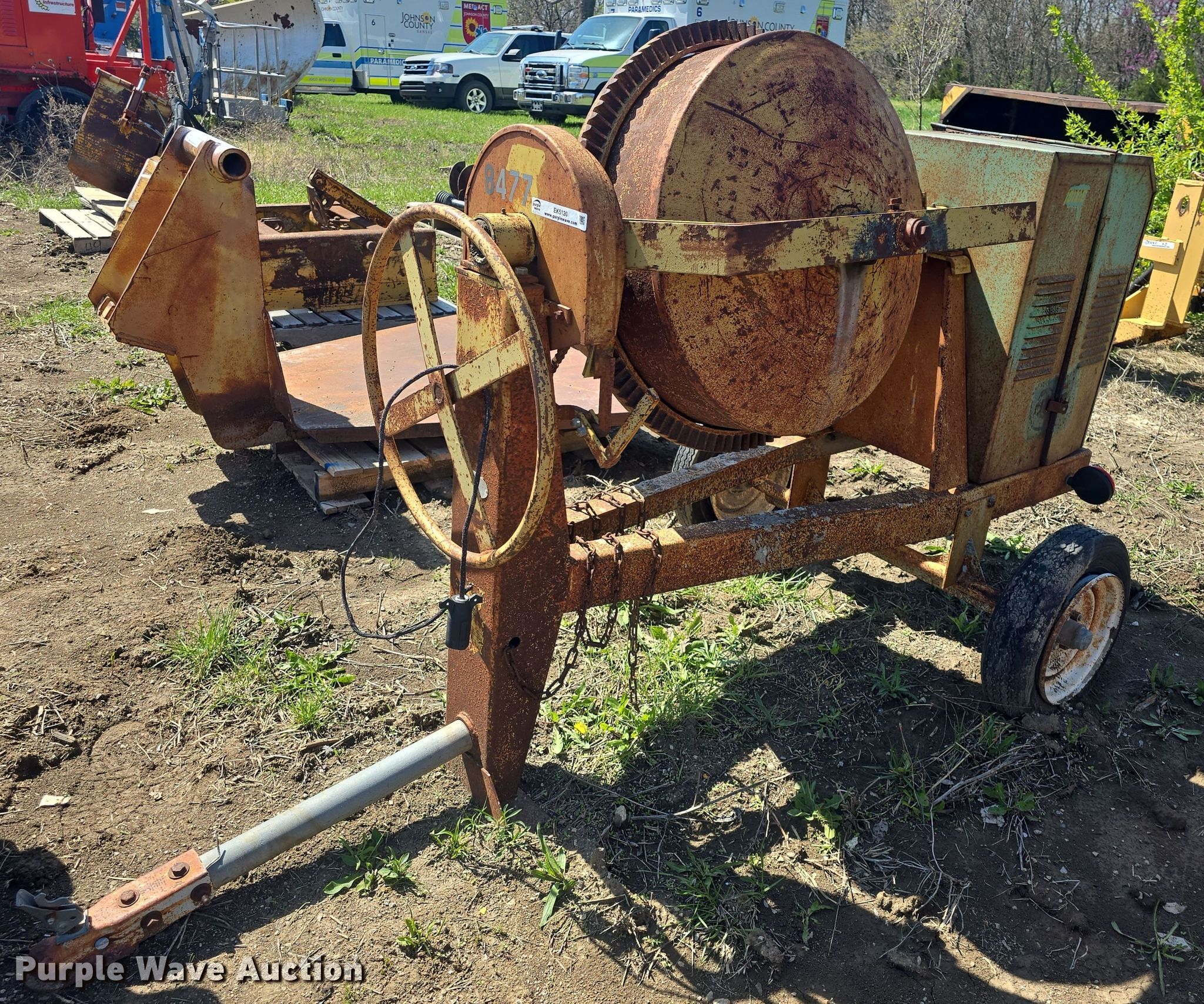 Purple Wave is selling a used Concrete Equip. or Acces. in Kansas. This item is a Dixie concrete mixer with the following: Single cylinder gas engine, Flat tires