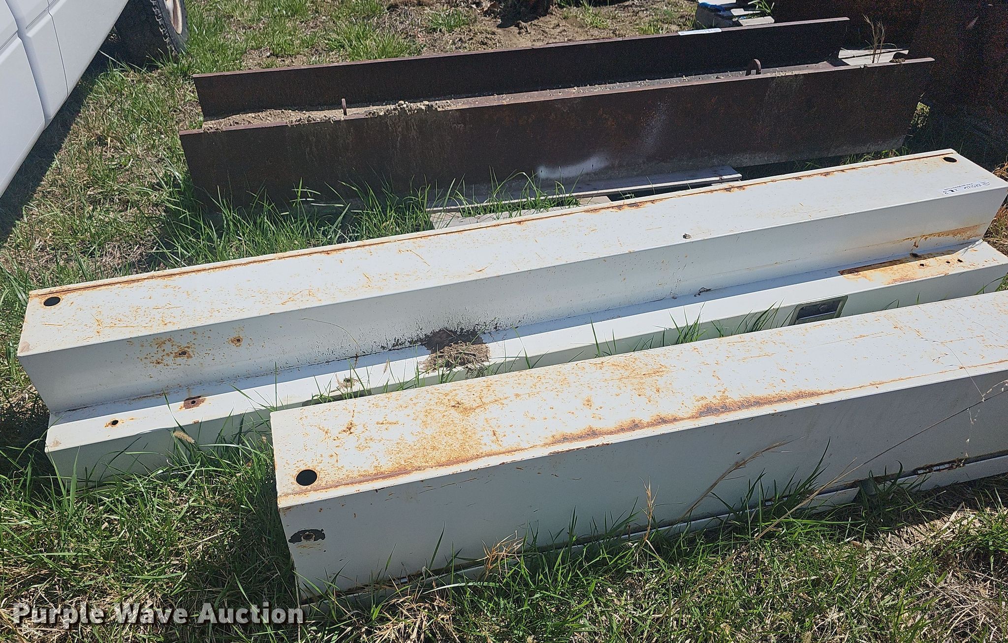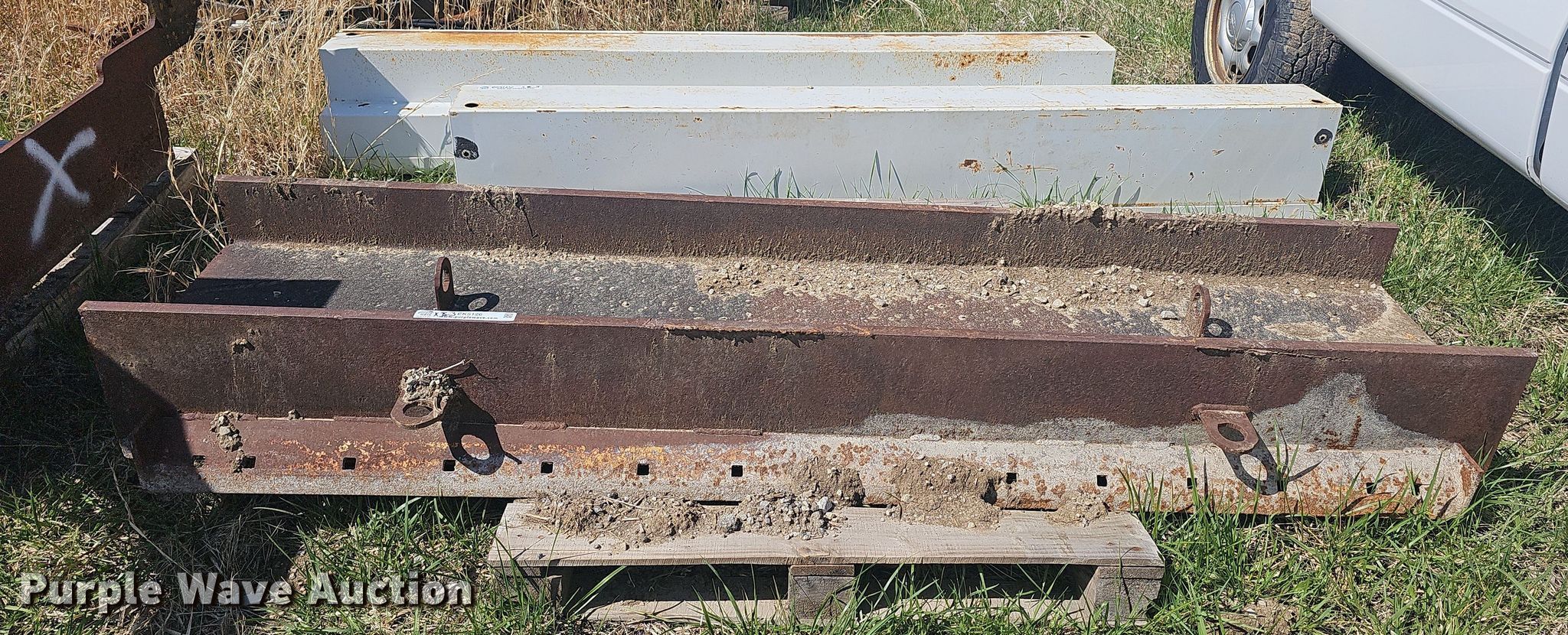 Purple Wave is selling a used Truck Part and Attach. in Kansas. This item is a Truck parts with the following: V-Box spreader top grate, 8' 10", (2) RKI side truck toolbox, I-beam, 7' 6" L x 19" W x 11" H