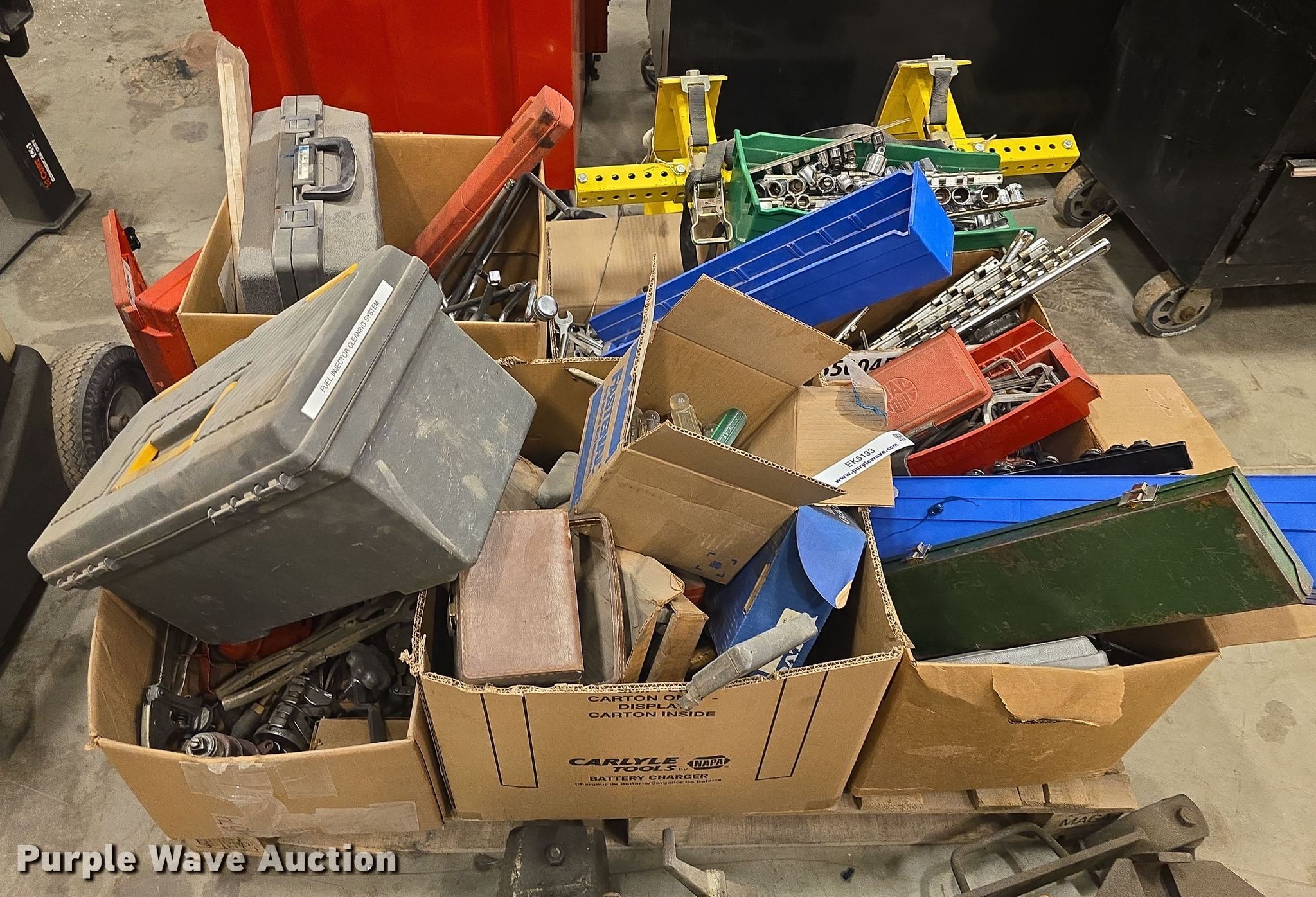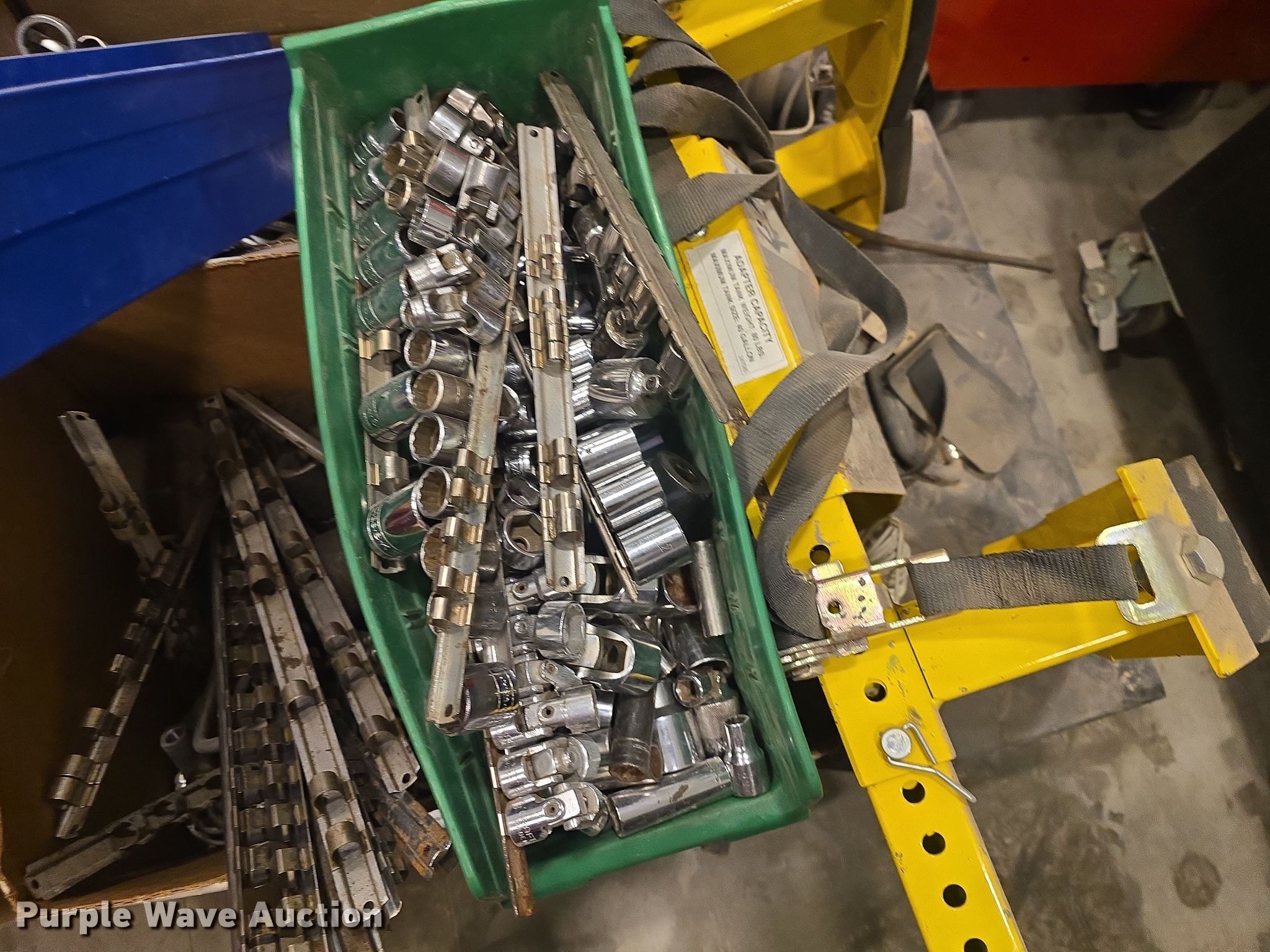 Purple Wave is selling a used Tools in Kansas. This item is a Tools with the following: Sockets, Wrenches, Gauges, Drills, Jack and more
