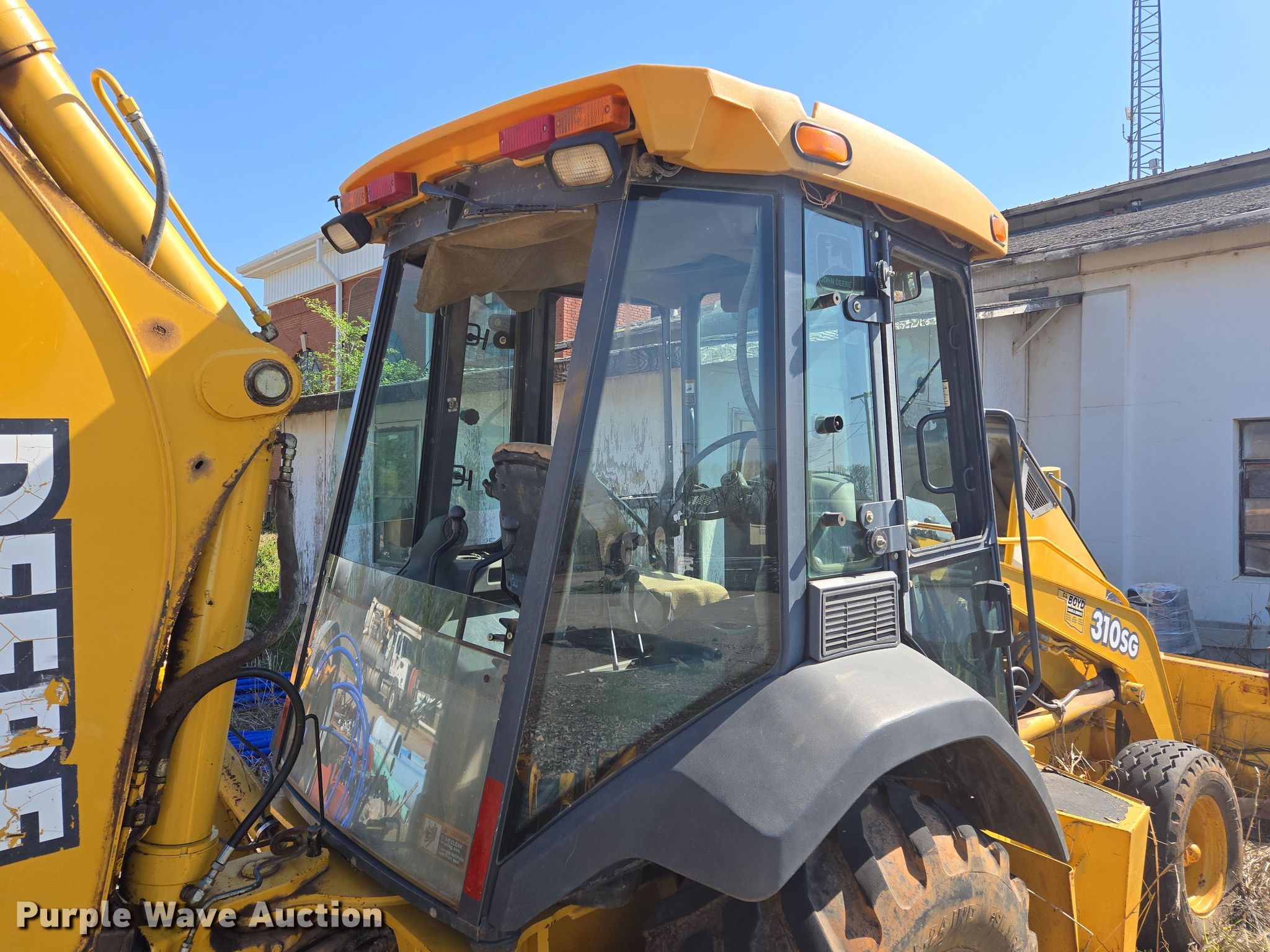 2001 John Deere 310 SG backhoe. Hours: 6,956 on meter, Serial: T0310SG894647. Engine John Deere 4045TT08T, Displacement: 4.5L, Cylinders: 4, Fuel type: Diesel, HP: 89. Transmission Shuttle shift, 4F - 4R. Chassis Differential lock. Operators station Enclosed cab, AC, Heat, Backhoe controls: Wobble stick / two stick. Features Loader Auxiliary hydraulics, Bucket John Deere Grapple Bucket, Width: 92", Cutting edge: Bolt-on, Backhoe Extendable stick, Bucket John Deere, Width: 18", Teeth: 4.. Tires Front: 11L-16SL, Rear: 19.5L-24. Notes Hood issues, will not close, Glass missing, Glass cracked, Hydraulic leak, Tooth broken, Flat tires, Non-operational unit. City of Purcell. Purcell, OK 73080