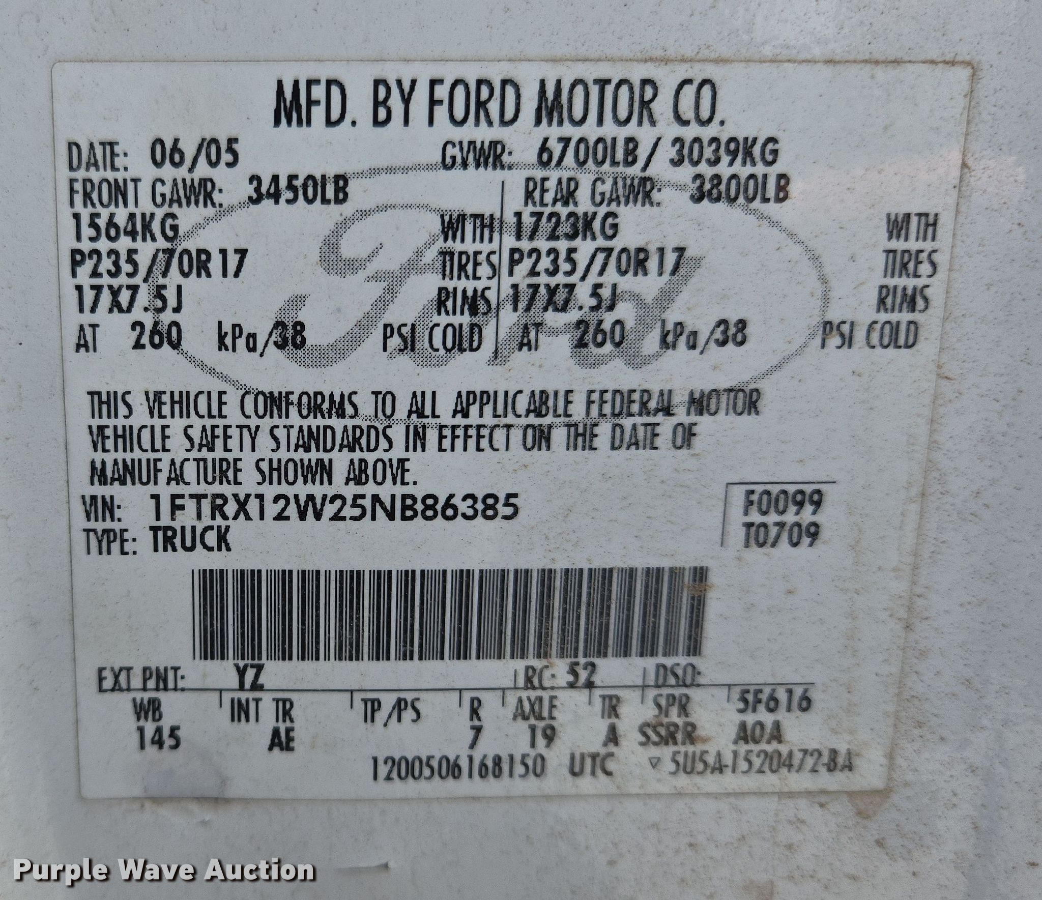 - VIN: 1FTRX12W25NB86385