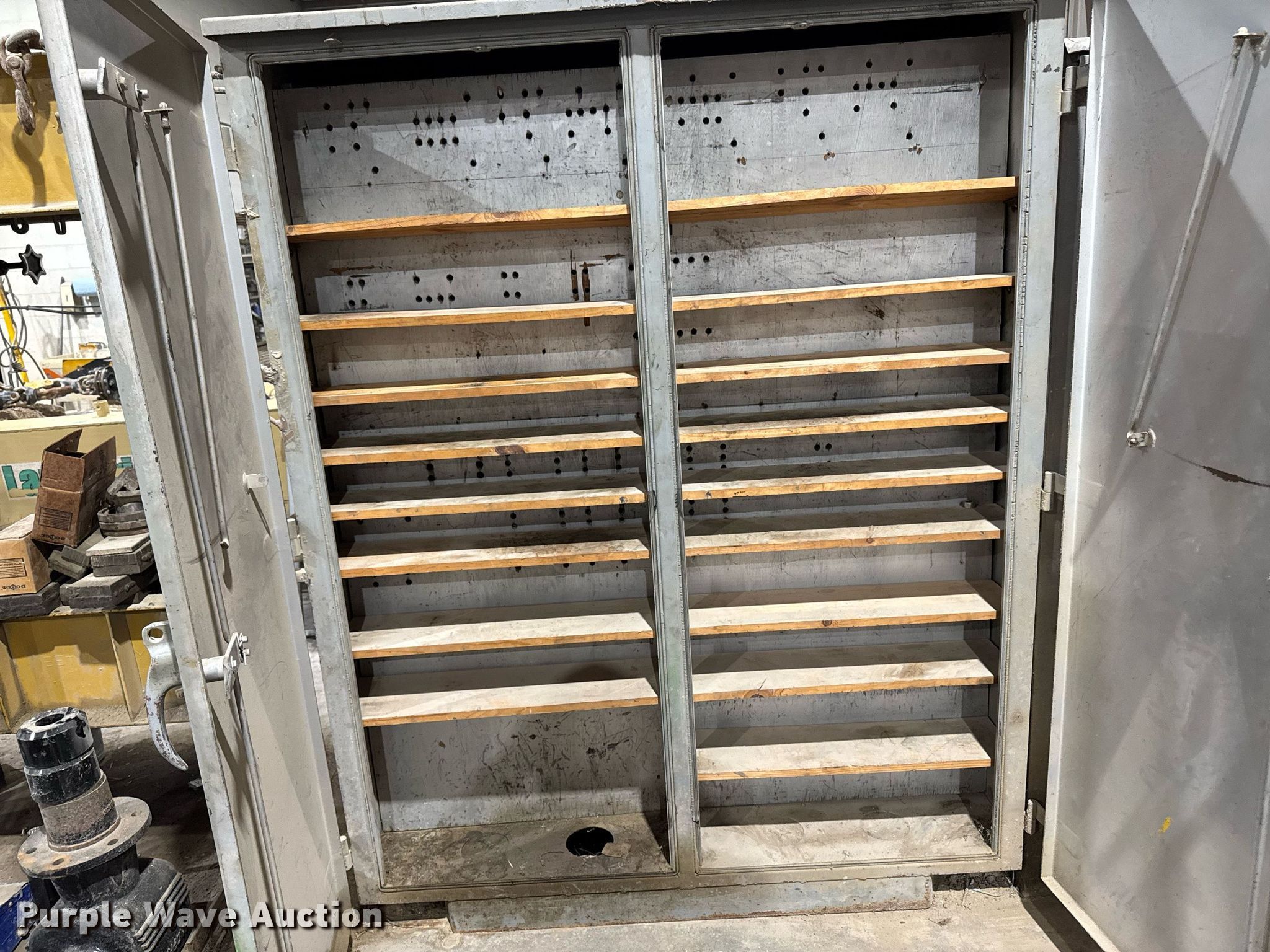 Purple Wave is selling a used Shelving and Storage in Iowa. This item is a Raco cabinet with the following: Serial: 960R1, 71" x 24" x 77", Steel